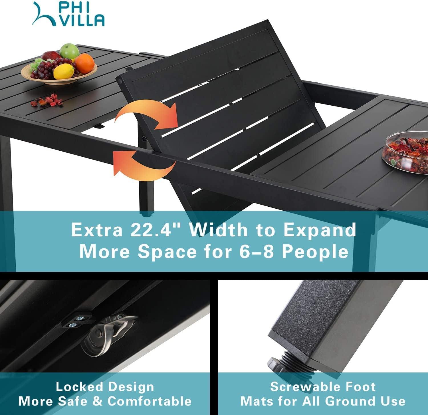 The expandable metal table is a⁢ standout feature, perfectly blending functionality with ​modern design. Its extendable surface, stretching from⁣ 64 inches ‌to an impressive 82 inches, makes it adaptable⁤ for gatherings ‍of different sizes. Whether hosting an intimate‍ brunch or a lively backyard dinner party, this flexibility ensures we always have enough room without sacrificing outdoor space. The hidden leaf conveniently stores under the table when not in use, keeping the setup sleek‌ and‌ clutter-free. Plus, the sturdy metal construction-treated with⁤ corrosion-resistant electronic and powder coatings-provides excellent‌ durability ⁣and weather resistance, making ⁣it a reliable centerpiece for any patio, garden, deck, or porch.