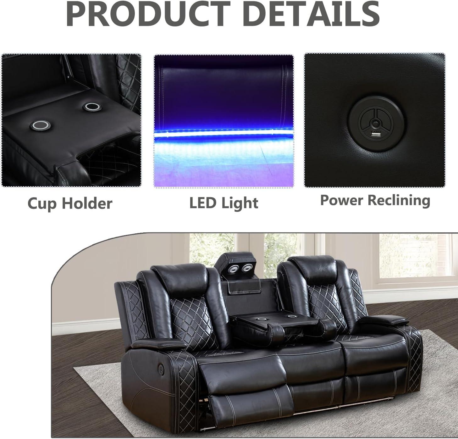 After spending considerable time with this reclining sofa set, we can confidently say it offers a blend of comfort, style, and functionality that elevates any living space. The ergonomic design truly supports the neck, waist, shoulders, and legs, making prolonged use a relaxing experience. The reclining mechanism is smooth and simple to operate manually, allowing adjustment between 105° to 160°, which suits a variety of lounging preferences. Beyond comfort, the integrated features such as USB ports, cup holders, and a storage console add practical convenience. Plus,the LED lighting adds a modern touch that enhances nighttime ambiance without being overwhelming.