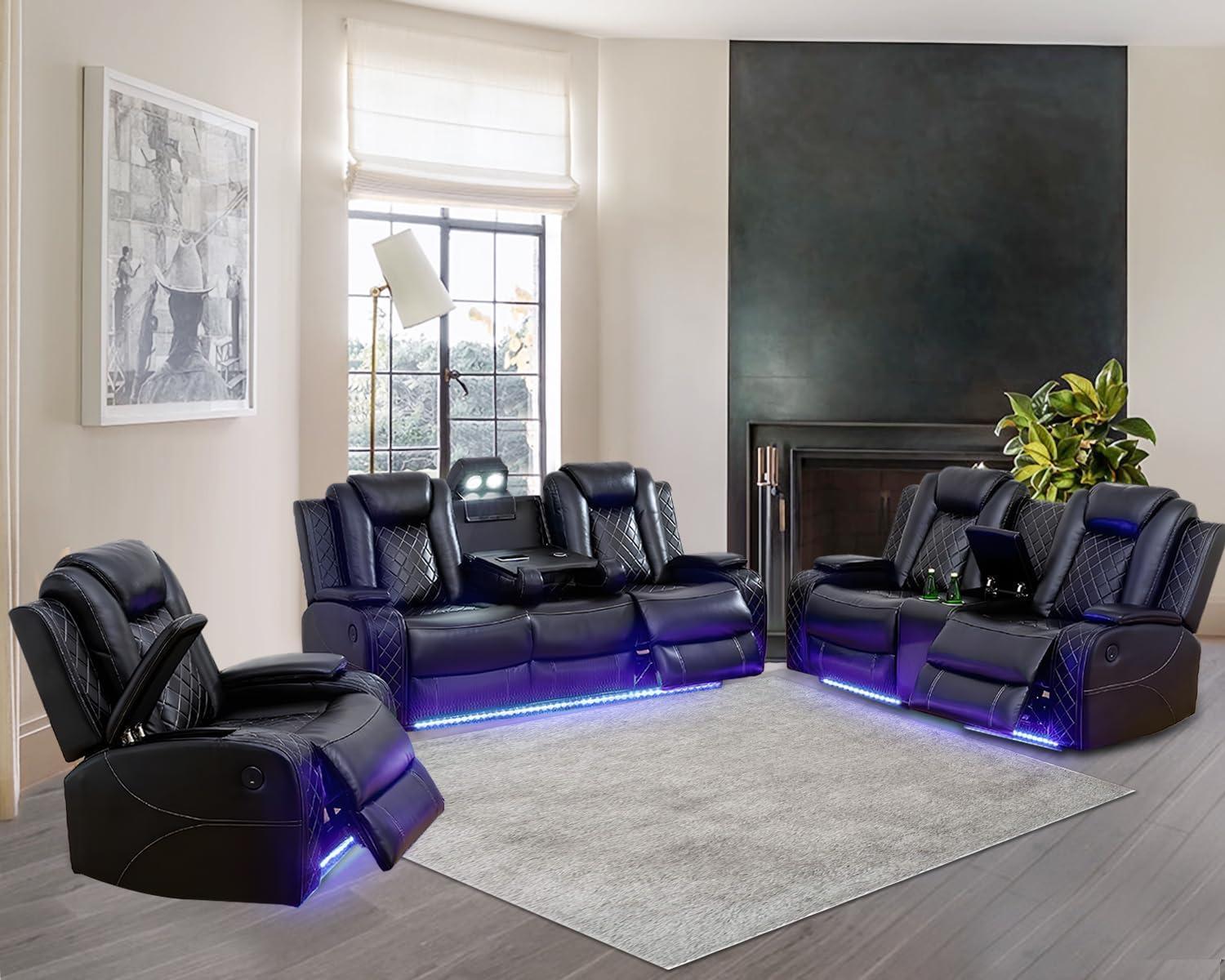 Check out the Power Leather Recliner Sofa Set with LED Lights on Amazon now!