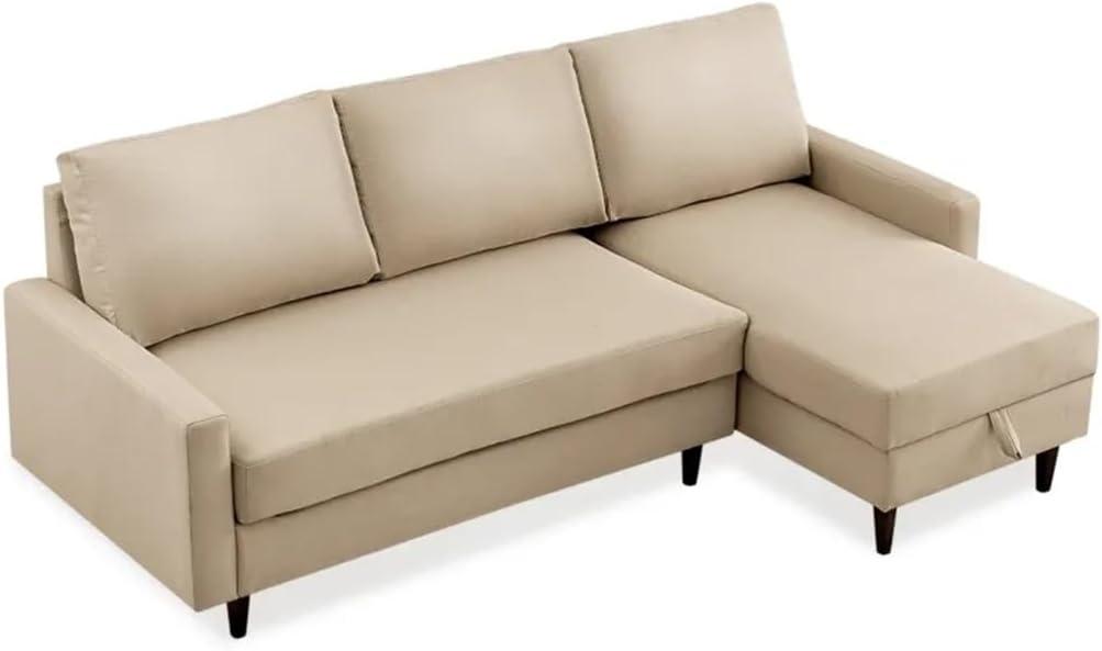 Living in a small space often demands versatile furniture,and this sectional truly meets that need with effortless style and functionality. Transitioning from a cozy three-seat sofa to a full sleeper is surprisingly smooth, making it ideal for guests or cozy movie nights. The right-handed chaise offers a clever storage compartment that’s perfect for blankets, pillows, or other essentials, keeping our living area tidy without sacrificing design. Constructed from solid wood and plywood with durable polyester upholstery, it combines sturdiness with a soft touch. The square armrests add a modern edge, while the foam-filled seats supported by S-shaped springs provide just the right balance of comfort and resilience.
