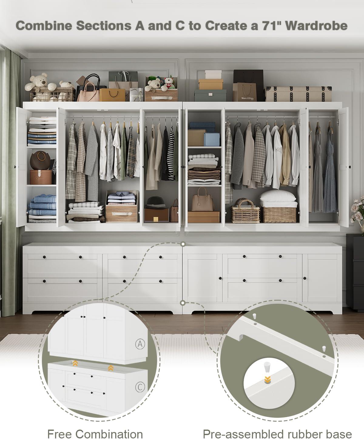 What truly stands out is the modular design which allows us to customize the wardrobe’s configuration to match any space ‍or need.Whether we want a compact‌ 2-door setup or a broader 8-door system, the flexibility is unparalleled. the durable wooden construction guarantees stability while the clean white finish seamlessly complements various decor ⁤styles, enhancing not⁤ only storage but also the⁢ overall⁤ aesthetics ​of the room. Assembly⁣ is ​straightforward, and the units can be stacked or separated, giving us full control over⁢ how we organize our clothes.Below is a quick overview of the wardrobe’s⁤ organizational features:
