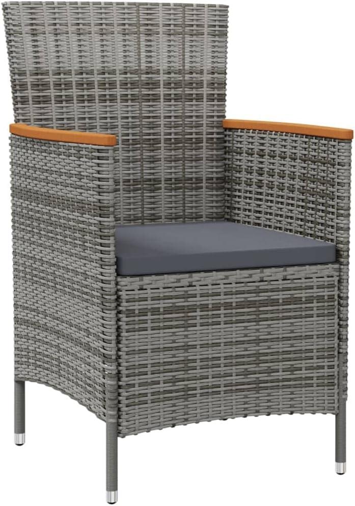 Comfort was clearly a priority in the design-each chair is paired with thick, removable cushions made from 100% polyester fabric, making cleaning and upkeep simple and efficient. The cushions’ dark gray tone complements the subtle gray rattan, creating a cohesive, inviting seating experience. Here’s a quick overview of some key design elements that impressed us: