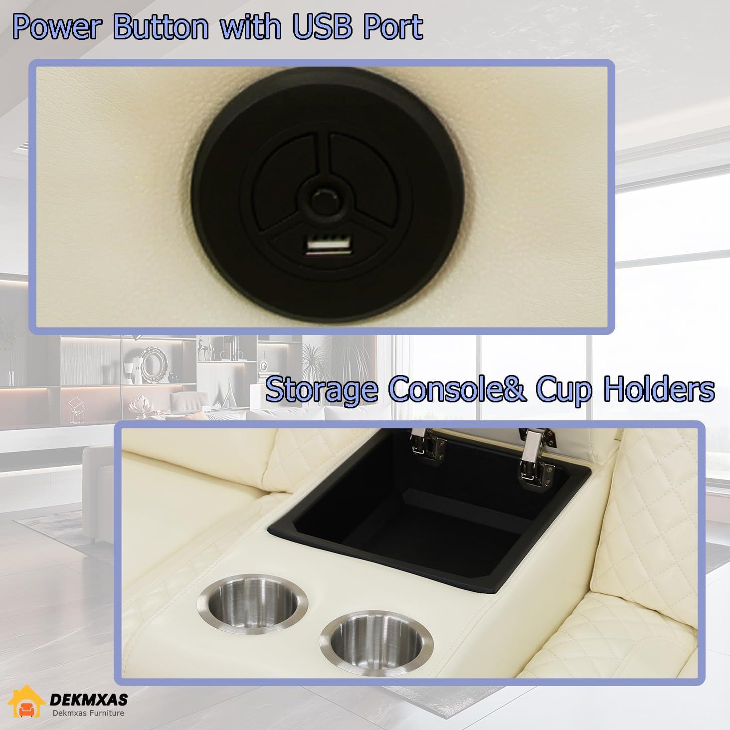 From the moment we set this furniture in our living room, it immediately transformed the space into something modern, stylish, and inviting.The vanilla white leather upholstery adds an element of luxury and sophistication without overwhelming the room’s natural ambiance.The quilted stitching on the backrests enhances the refined look, creating a subtle texture that catches the eye. Beyond looks, the carefully crafted design incorporates practical touches like built-in cup holders and a fold-down storage console with USB ports, which seamlessly blend functionality with style.