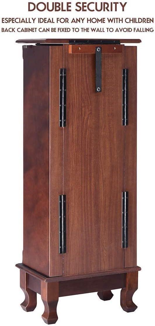 After thoroughly exploring this jewelry organizer, we appreciate how well it balances style, function, and value. Its ample storage options-including seven drawers of varying sizes, two swing doors with twelve necklace hooks, and a top compartment with divided spaces-make it an excellent choice for those with an extensive collection. The velvet lining and flannel compartments provide essential protection, preventing tangling and scratches. The reversible mirror adds versatility for quick outfit checks, while the solid MDF construction ensures durability without sacrificing elegance. This piece stands out as both a decorative accent and a practical storage solution, fitting seamlessly into bedrooms or living rooms with its classic wood texture.