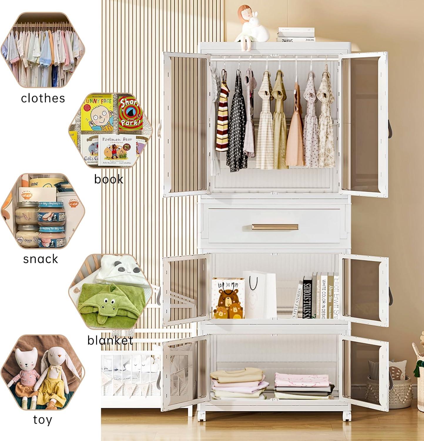 - Transparent Doors & Drawers: Easy to see contents at a glance, helping kids learn organization and find their clothes without hassle.