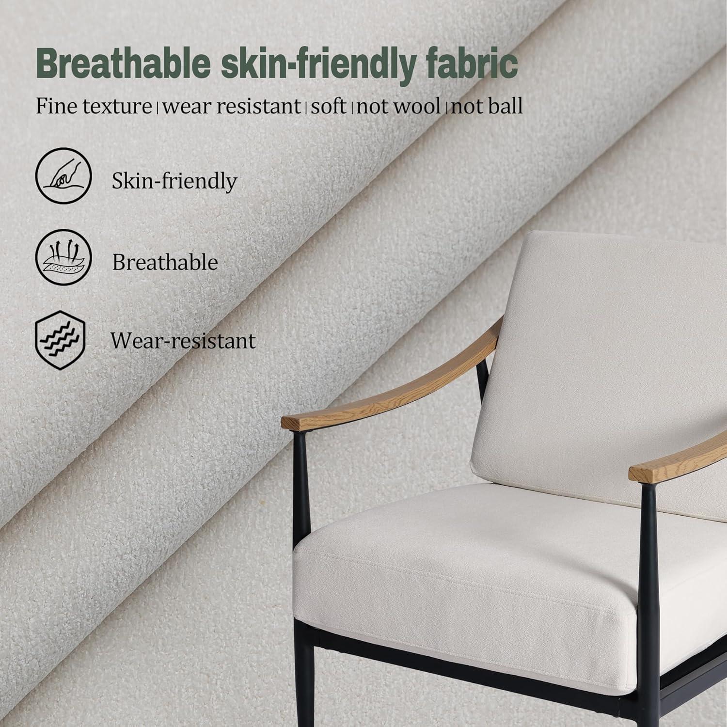 Upon unboxing the set, the first thing that caught our attention was the seamless blend of mid-century design with contemporary touches. The chairs boast a solid metal frame, giving a reassuring feeling of sturdiness right from the start. With a agreeable weight capacity of up to 350 lbs, they offer both durability and stability.the intricate curved imitation wood-grain metal armrests stand out, adding a subtle elegance that elevates any space without overpowering it. Upholstered in a breathable, cream-white linen fabric, these chairs present a fresh and inviting look that fits effortlessly into various decor styles.