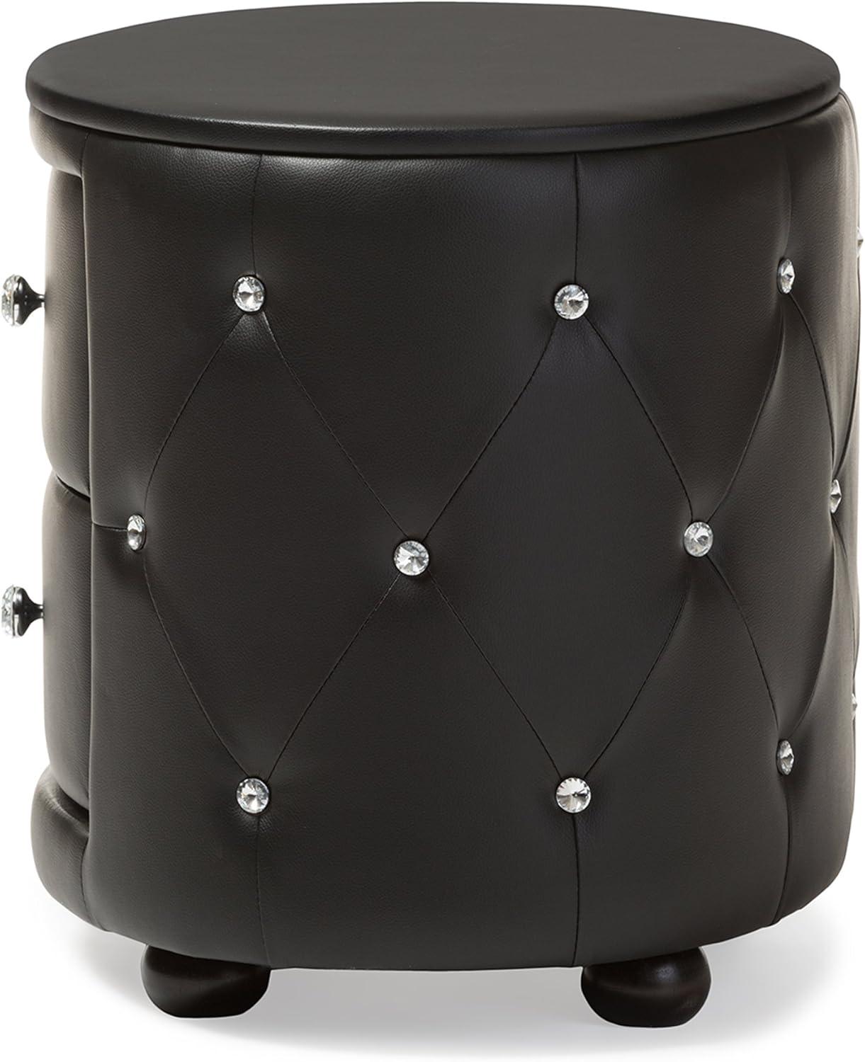 As we’ve seen, the Baxton Studio Davina Hollywood Glamour Style oval Nightstand beautifully blends modern sophistication with practical storage. Its plush black faux leather upholstery, adorned with sparkling faux crystal buttons, brings a touch of glamor to any bedroom, while the two spacious drawers offer just the right amount of organization without compromising style. Whether you’re looking to elevate your bedroom aesthetic or simply need a chic and functional nightstand, the Davina stands out as a compelling choice that arrives fully assembled and ready to impress.