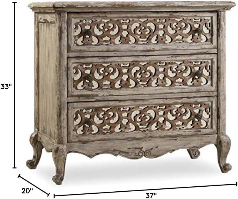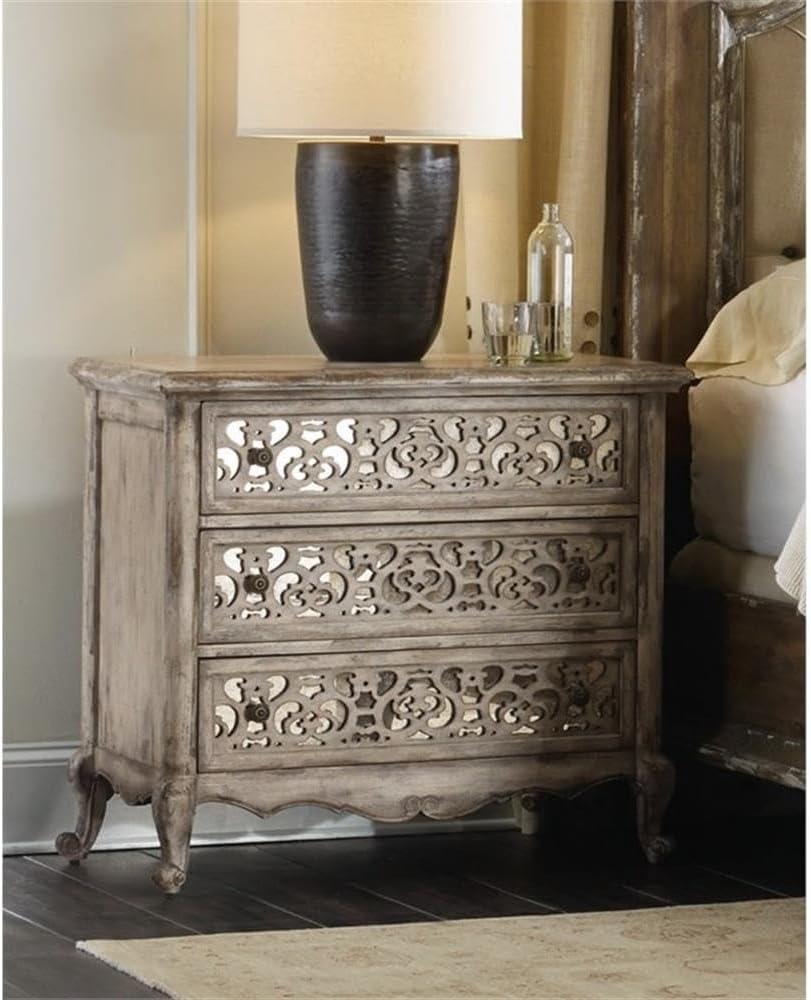 Overview of the Beaumont Lane 3 Drawer Fretwork Nightstand in Caramel Froth