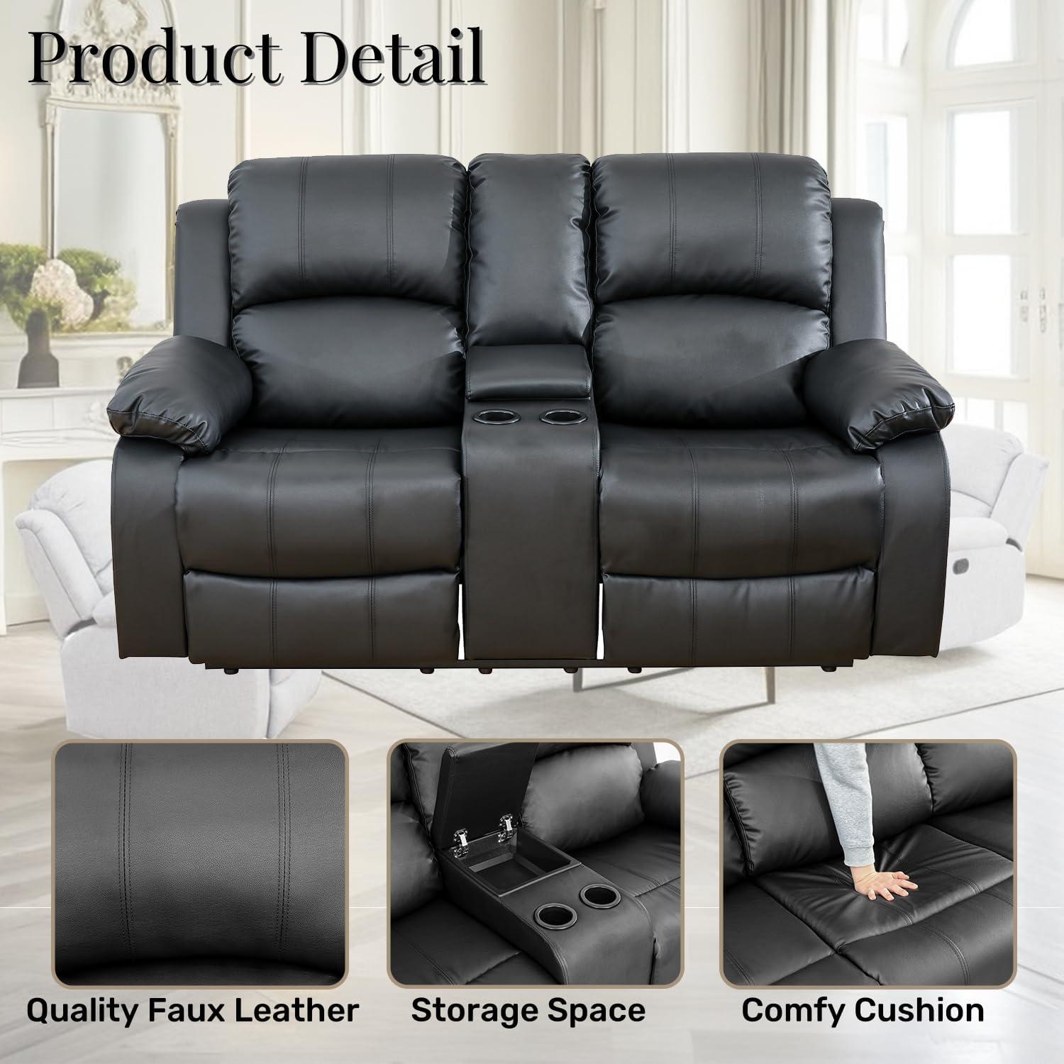 | Integrated Features: Loveseat’s storage and cup holders add functionality and convenience for everyday use. | Color/Shade Variation Notice: Important to confirm order color as the photos (brown & black mentioned) might vary slightly in appearance. |