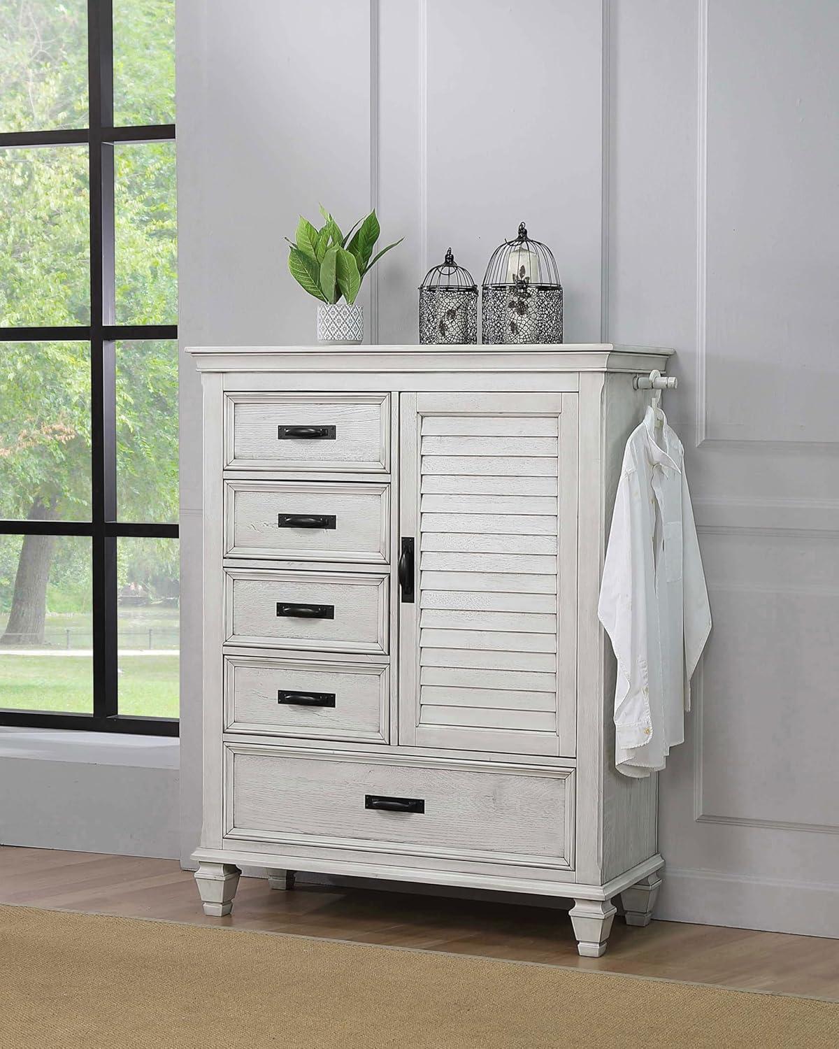 As we wrap up our review of the Coaster Franco Chest, it’s clear that this piece beautifully combines farmhouse charm with practical design.Its distressed white finish and thoughtful details like the louvered door and bar pull handles bring a timeless elegance to any rustic bedroom. Beyond its aesthetic appeal, the ample storage space with soft-closing drawers makes organizing your clothes and essentials a seamless experience. For those seeking a stylish yet functional addition to their bedroom furniture,the Franco Chest offers a perfect balance of durability,convenience,and classic farmhouse style.If you’re ready to add this versatile and charming chest to your home,you can find more details and purchase it directly here: Coaster Home Furnishings – Franco 5-Drawer Chest.