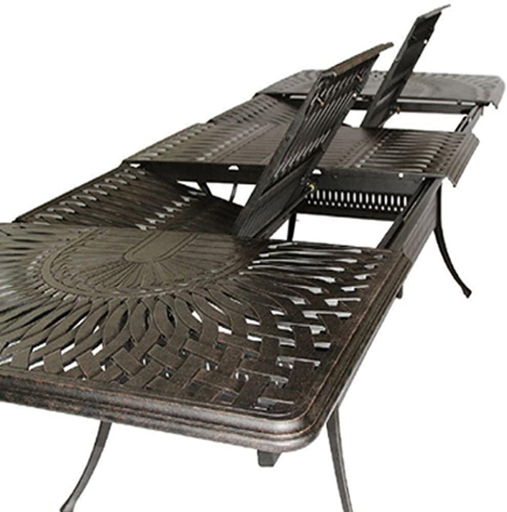 Expandable table design offers flexibility, comfortably seating 10 guests for both intimate meals and lively gatherings. | The desert bronze color, while elegant, may not blend well with every outdoor décor style or color scheme. |