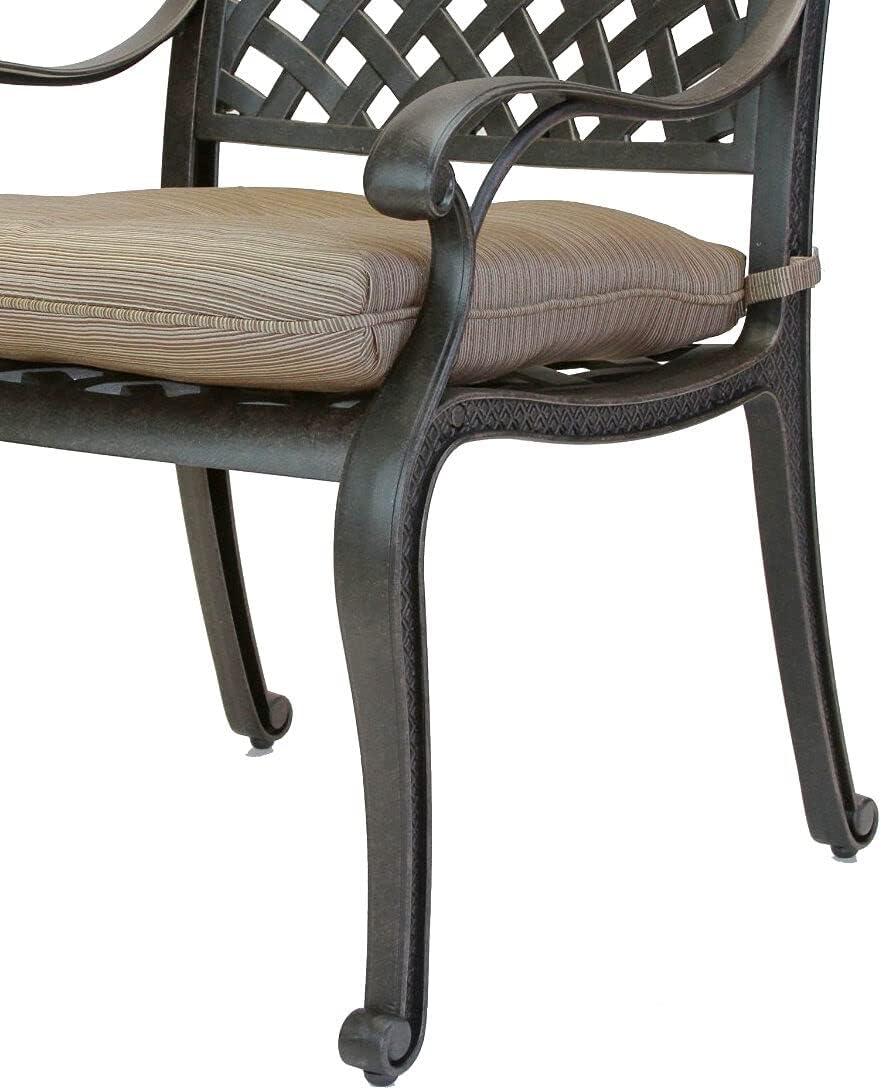 From our experience,the seating comfort provided by these chairs truly stands out.Crafted with all-weather cast aluminum, they offer durable support without sacrificing ease of use. The chairs feel sturdy yet lightweight enough to move around effortlessly. The included walnut cushions add a subtle layer of softness, enhancing comfort while remaining moisture-resistant – perfect for unpredictable outdoor conditions. We also appreciate the thoughtful design of the armrests and seat dimensions that accommodate various body types comfortably during long meals or casual gatherings.