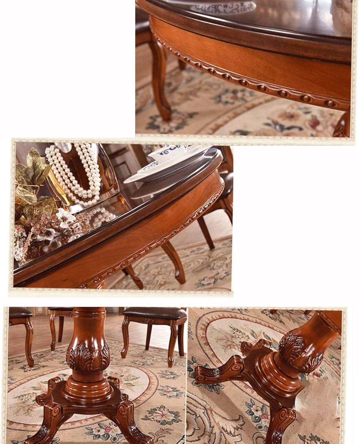 Our experience with this exquisitely crafted dining set has been truly remarkable. The blend of solid wood and genuine leather creates a sophisticated yet cozy atmosphere that enhances any space, from a reception area to a balcony nook. We particularly appreciated the meticulous hand-carved details that add a unique artistic flair, making each piece feel like a timeless treasure. the elegant curves of the table legs not only elevate the design but also ensure remarkable stability with a firm ground contact. Its range of diameter options, from 80 cm to 1.3 meters, makes it adaptable for various room sizes without sacrificing comfort or style.