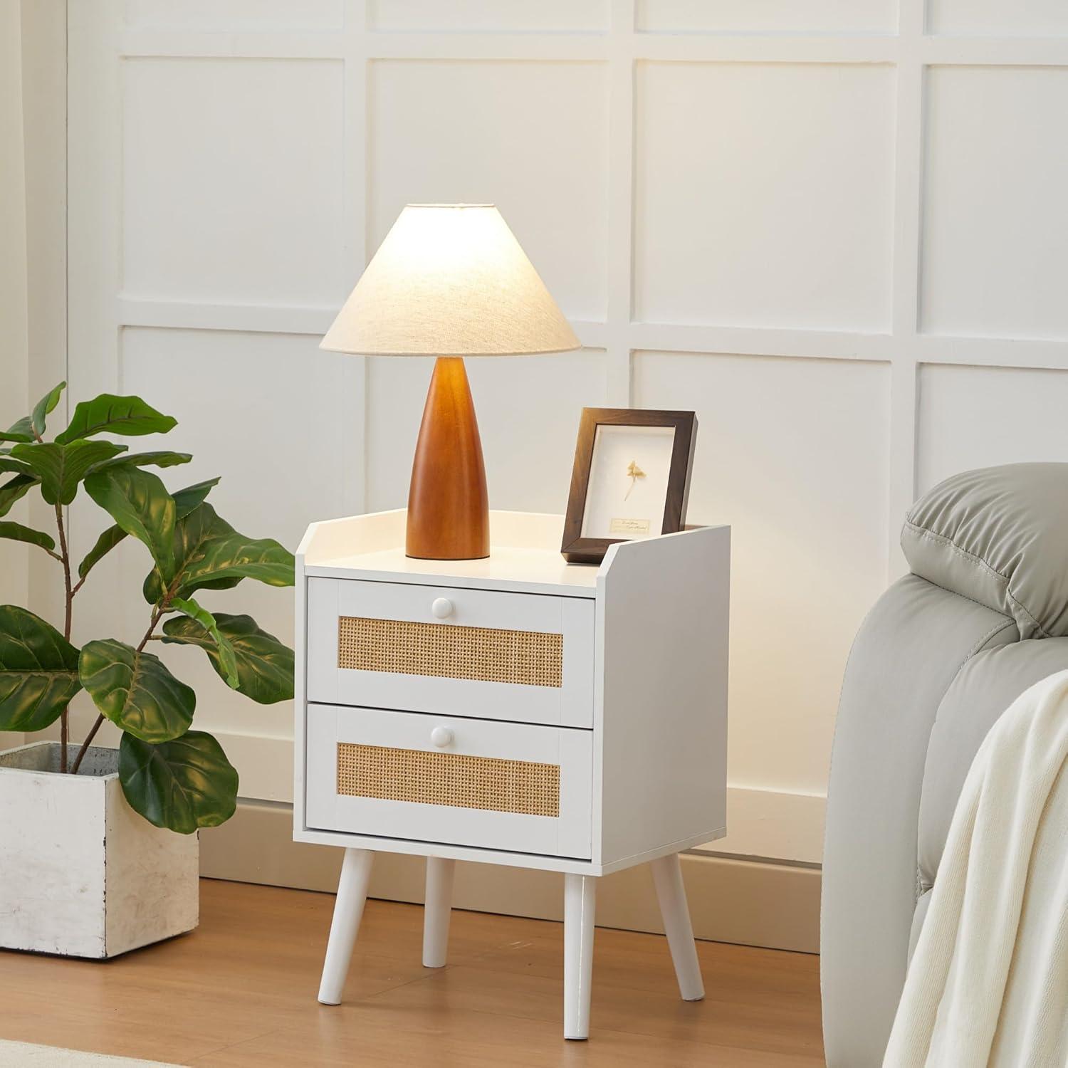 When we explored options for nightstands that combine style and practicality, most contenders either leaned heavily towards bulkiness or minimal storage space. This set stood out as a perfect balance with its elegant rattan design paired with a sturdy wooden base. Unlike typical all-wood nightstands, these pieces offer a textured, handcrafted aesthetic that adds a relaxed boho vibe without compromising durability.We especially appreciated the two spacious drawers, which many alternatives lacked, as they provided handy storage for bedside essentials such as books, glasses, and small electronics, helping to keep surfaces clutter-free.