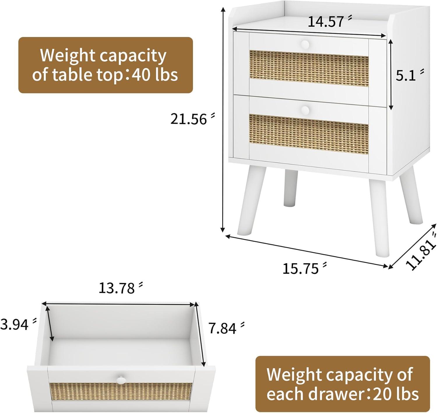 Upon unboxing, the charm of this nightstand set immediately stood out. The elegant blend of boho and farmhouse styles is highlighted by the handmade rattan weaving paired with smooth white wood, creating an inviting, textured look that complements a variety of interiors.We appreciated the balance it strikes between stylish design and practicality, with each table featuring two spacious drawers perfect for keeping bedside essentials neatly tucked away. The sturdy pine feet and durable MDF construction,combined with wear-resistant paint,give these pieces a robust feel that promises longevity.Additionally, the non-slip rubber pads on the base help protect flooring and reduce noise during movement, an frequently enough overlooked but much-appreciated feature.