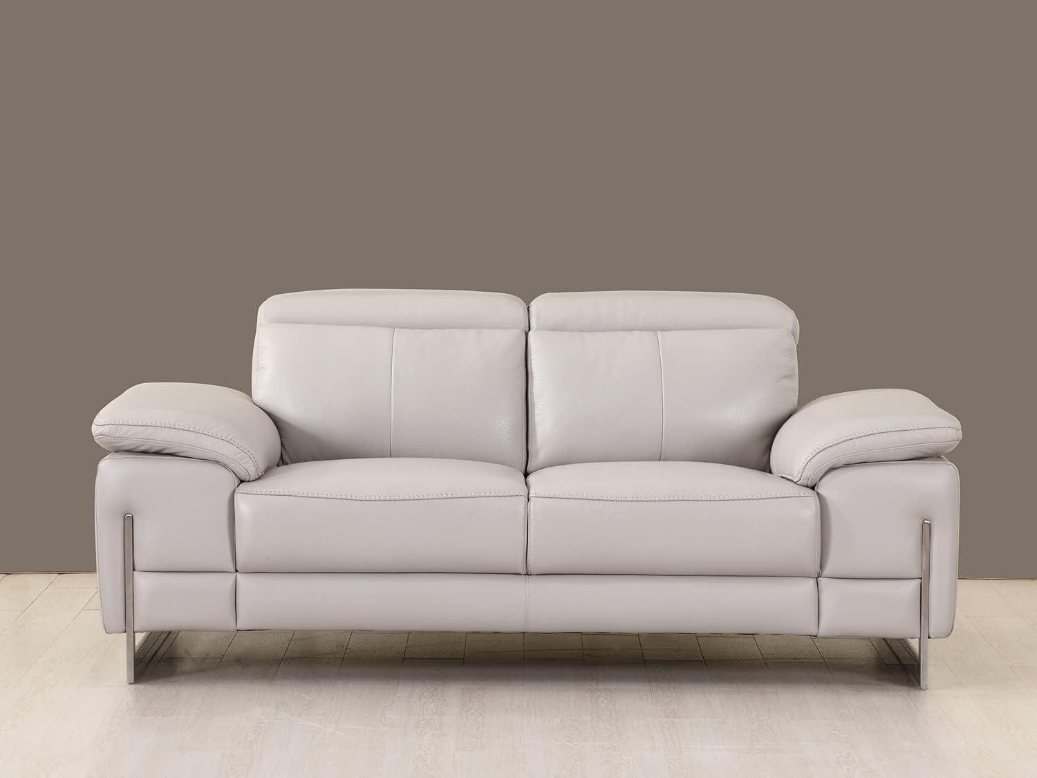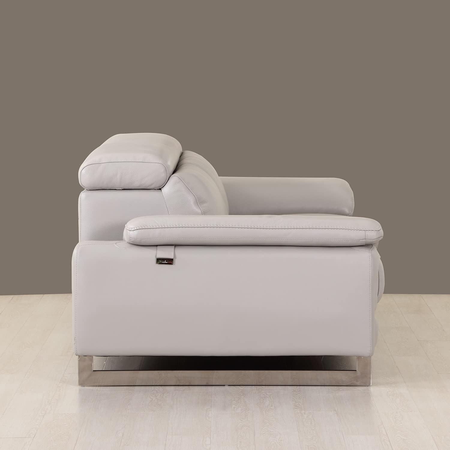 For those looking to elevate their living space with a blend of luxury and modern design, this set is an excellent choice. Its top grain Italian leather upholstery not only provides a sophisticated aesthetic but also ensures durability and comfort. The light gray color offers versatility, easily complementing various interior styles from minimalist to contemporary. Featuring adjustable headrests and a sleek metal base, the pieces offer both style and functional comfort. Assembly is required,yet manageable,given the clear structure and solid build.With generous dimensions-spanning from the spacious sofa to the cozy chair-this set delivers ample seating without overwhelming your room.