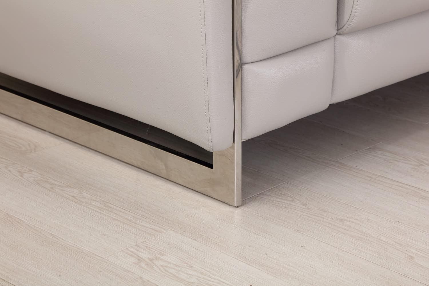 From the moment we invited this collection into our living room, the updated contemporary design became an instant conversation starter. The smooth, light gray top grain italian leather exudes understated elegance, harmonizing effortlessly with various décor styles. The adjustable headrests add a subtle yet smart feature, allowing us to tailor comfort without disrupting the sleek profile. Built on a gleaming metal base, the set combines durability and style, creating a captivating balance that redefines modern living room aesthetics.