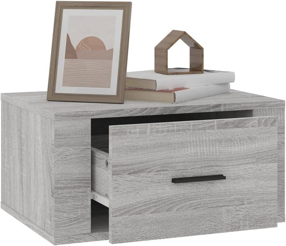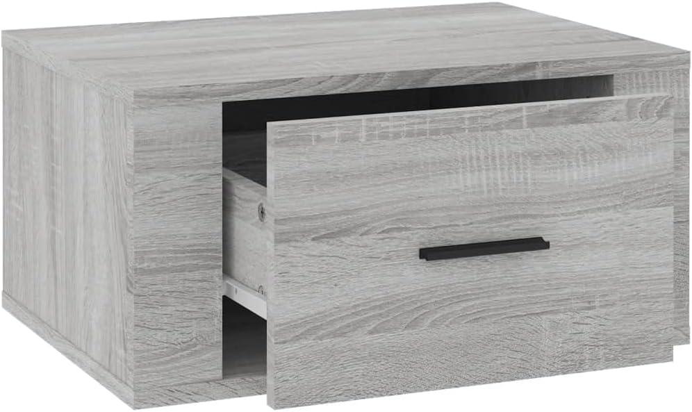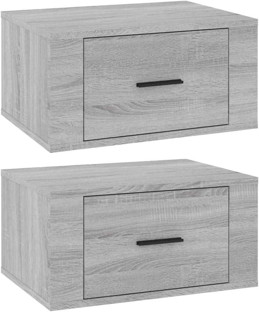 We appreciate how this nightstand set blends modern sophistication with practical function, adding a sleek touch to any bedroom while simplifying bedside storage. The muted grey Sonoma finish is neutral yet stylish, allowing the pieces to complement a range of decor themes, from contemporary to minimalist. Their compact, rectangular silhouette fits neatly beside the bed without overwhelming the space, and the wall-mounted design instantly frees up valuable floor area, enhancing room flow and creating a lighter visual footprint.