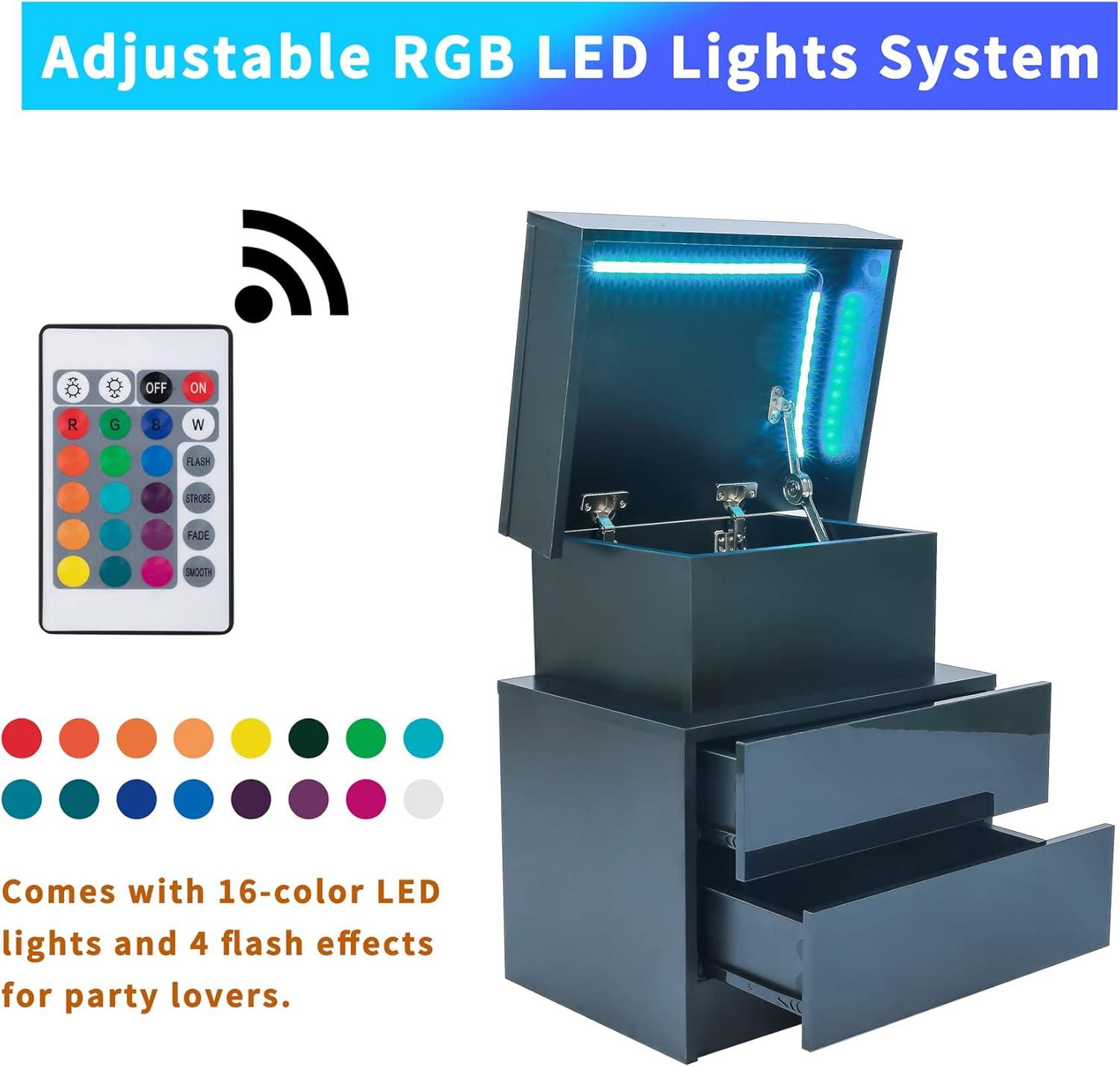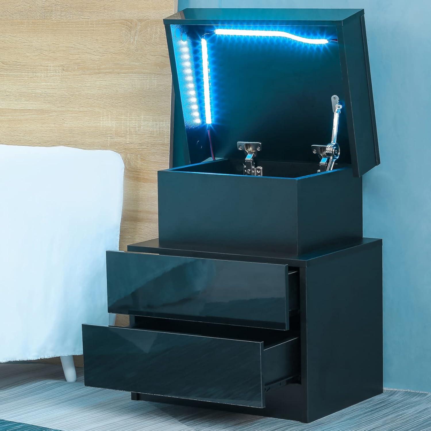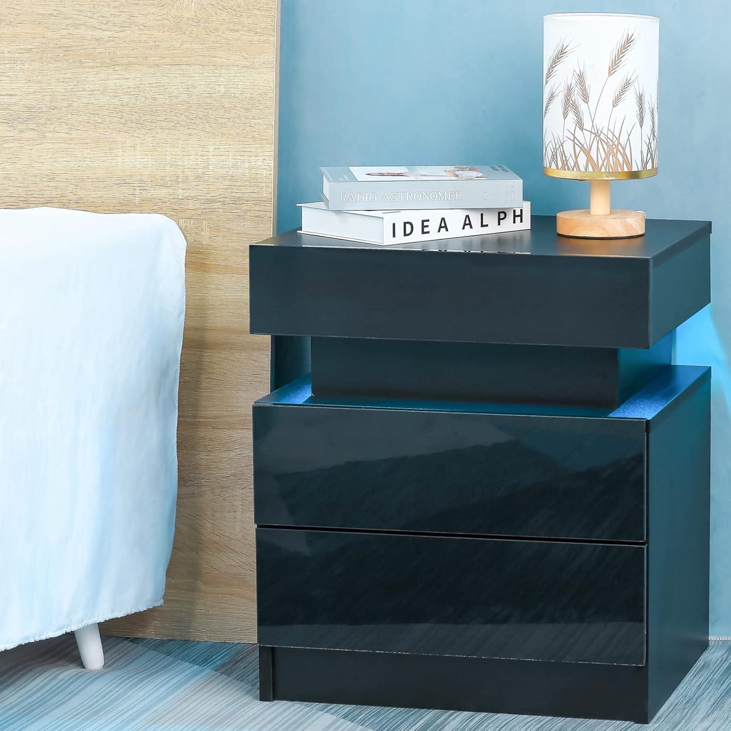 The LED lighting feature truly sets these stands apart. Equipped with 16 vibrant RGB LEDs and adjustable brightness across four modes, the ambient glow adapts beautifully to different moods and settings. The included remote control makes switching colors and modes effortless, turning a simple nightstand into a customizable light experience. Moreover, the sleek black finish paired with high gloss drawers lends a modern, stylish touch that complements various décor themes.Practical, stylish, and fun-the overall build and design quality gave us confidence in daily use.
