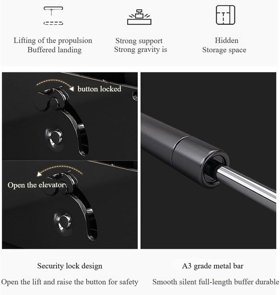 The lift top mechanism on this coffee table truly stands out in terms of ease and functionality. thanks to the sturdy metal hydraulic frame, lifting the tabletop is smooth and requires minimal effort, providing a stable elevated surface perfect for working or dining. This design eliminates the need to awkwardly lean over a low table, making it a practical addition for small spaces or multi-use rooms. When folded down, it blends seamlessly into the living area as a sleek, modern coffee table, while the adjustable height feature caters to our varying needs throughout the day.