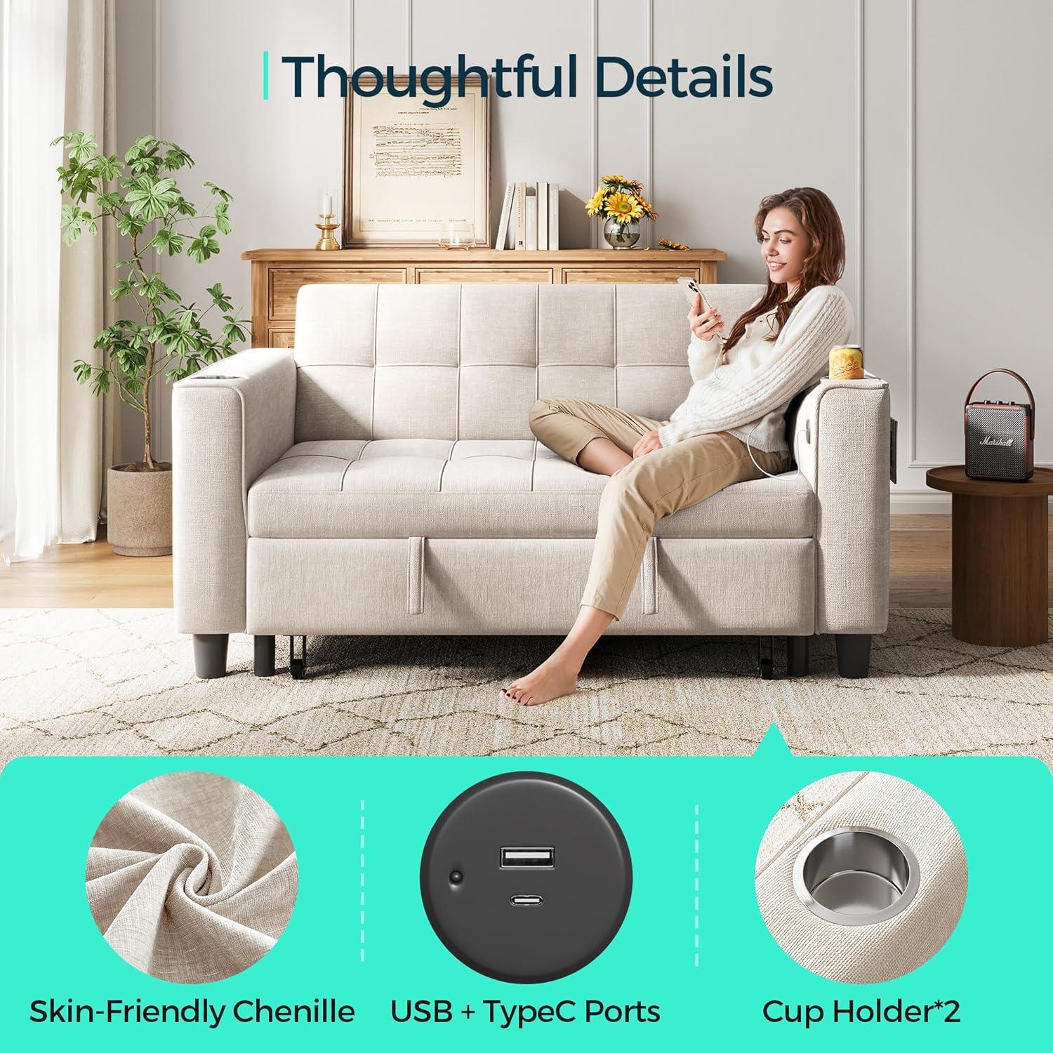 After spending considerable time with this versatile piece, we truly appreciate how it transforms small spaces with ease. The 3-in-1 functionality – switching seamlessly between loveseat, chaise longue, and pull-out sleeper – offers outstanding flexibility, making it ideal for studio apartments or guest rooms. The integrated charging station with both USB and Type-C ports,along with built-in cup holders and a side pocket,elevate its convenience,giving it a practical edge that blends modern living needs with comfort.The chenille upholstery feels soft yet durable, providing a cozy touch suitable for year-round use.