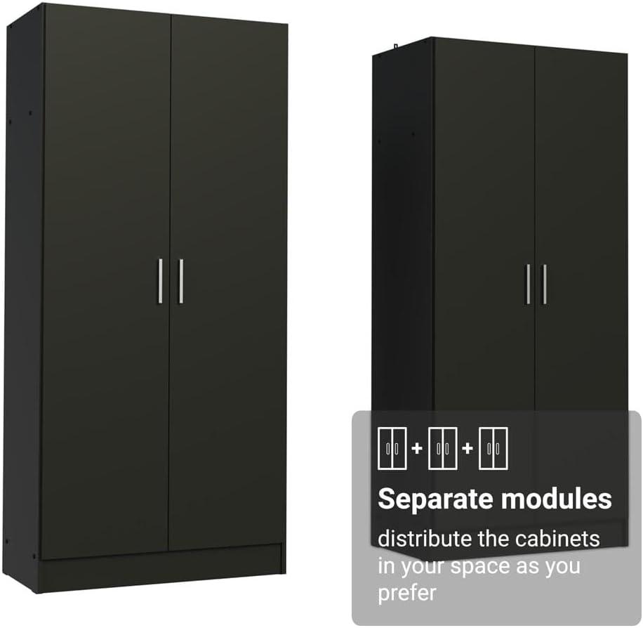 The elegant black finish of this storage cabinet instantly elevates the ambiance of any bedroom or office space. Its clean lines and smooth surfaces create a modern aesthetic that balances style with practicality. Crafted from high-quality particle board made of renewable wood, the wardrobe ensures durability without compromising on eco-consciousness. The solid construction feels reassuringly sturdy, while the matte texture resists fingerprints and minor scratches, so it stays looking fresh even with daily use. This design truly stands out, adding a subtle yet sophisticated presence that enhances the room’s overall decor.