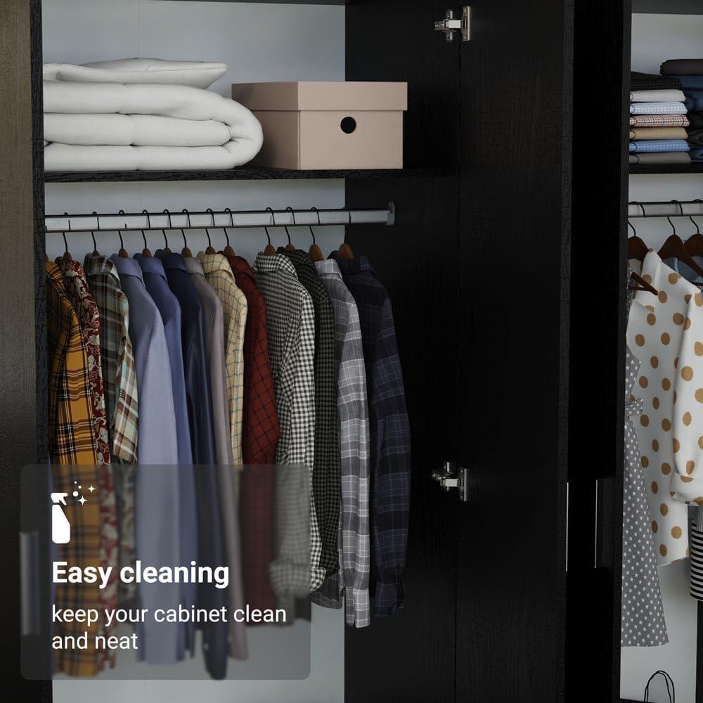 Safety-focused design: Comes with wall-mounting hardware to keep the wardrobe stable and secure. | Color options limited: The sleek black finish is stylish but may not suit all decor themes. |