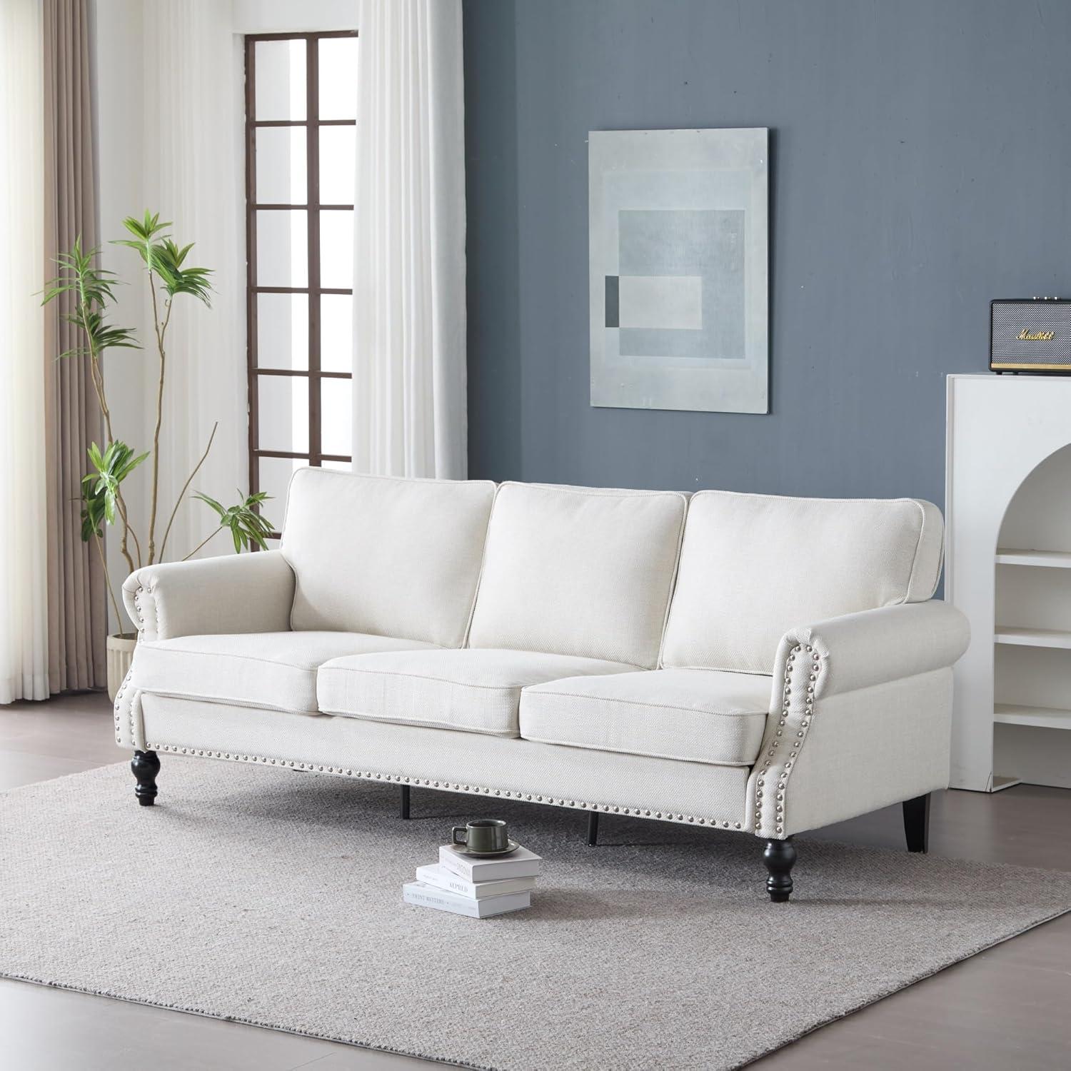 Our search for a stylish yet sturdy centerpiece for the living room recently led us to the Nailhead Trim, Deep Seat Rolled Arms Faux Leather upholstered Sofa with Wooden Legs. As a team who appreciates both classic design and lasting comfort, we were intrigued by this sofa’s blend of vintage charm and modern durability. From its brass nickel nailhead detailing to the robust iron and solid wood frame, this piece promised to be more than just an ordinary seating option. Over the past few weeks, we have put this sofa through daily use, paying close attention to its comfort, build quality, and overall aesthetic. In this review, we’ll share our honest experience with how well it performs as a stylish, reliable addition to any living space.