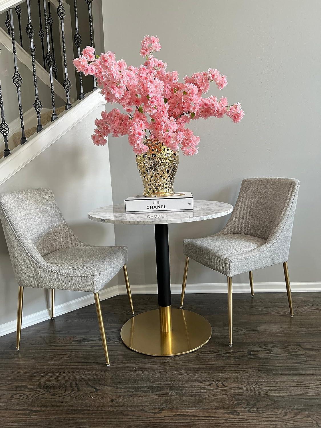 We find the Bistro Lucy table to be a stunning blend of form and function, perfectly tailored for compact dining spaces without sacrificing style. Its round faux Carrara marble top radiates an elegant, classic charm while the brushed black metal pedestal base accented with subtle gold details brings a refined mid-century modern flair. This combination not only elevates the table’s visual appeal but also ensures stability thanks to the carefully weighted base that prevents any unwanted wobbling. The dimensions make it ideal for cozy meals with two to three people, making it a versatile option for kitchens, breakfast nooks, or intimate dining areas.