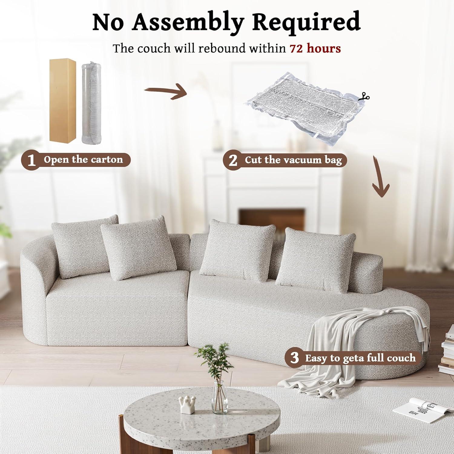 Crafted with premium chenille upholstery, the couch’s surface offers a tactile delight that’s soft yet durable, making it perfect for long lounging sessions.the high-resilience foam inside maintains its plush support and shape over time, paired with four cloud-like throw pillows for added coziness. When combined, these features deliver a seamless balance of form and function. Plus, the ingenious modular design means you can simply unpack and position without any assembly hassle-an effortless upgrade to your living environment.