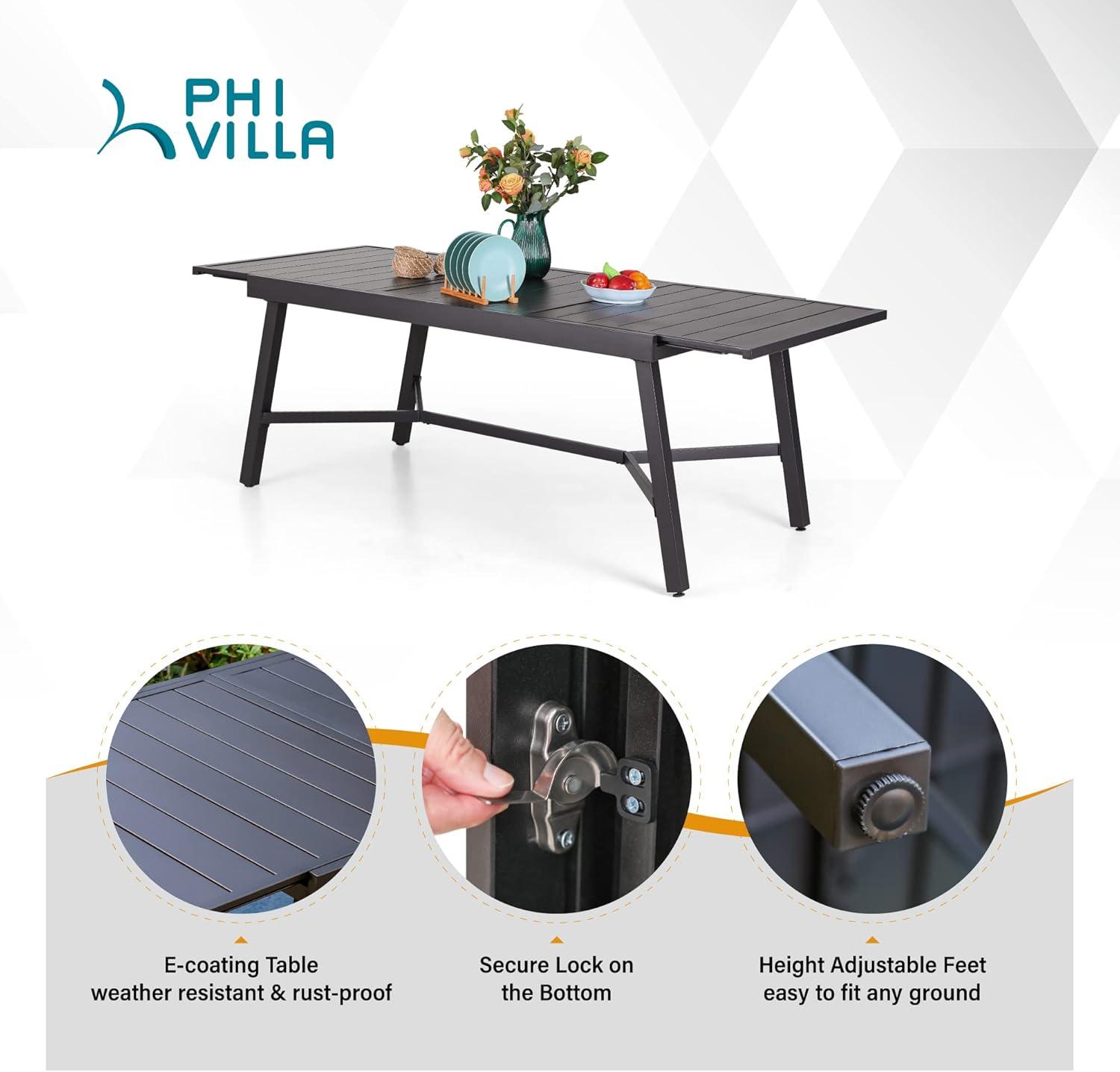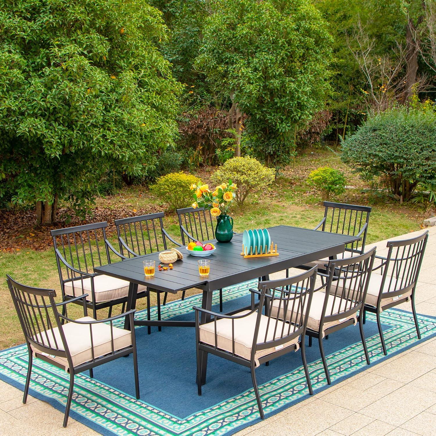 the PHI VILLA 9-Piece Expandable Patio Set strikes a solid balance between functionality, durability, and comfort. Its clever expandable table design adapts seamlessly to your gathering size, while the sturdy metal chairs with cushioned seats ensure everyone can relax in style.Whether you’re hosting a lively family dinner or enjoying a quiet afternoon on the deck, this set has proven to be a dependable and attractive addition to any outdoor space.