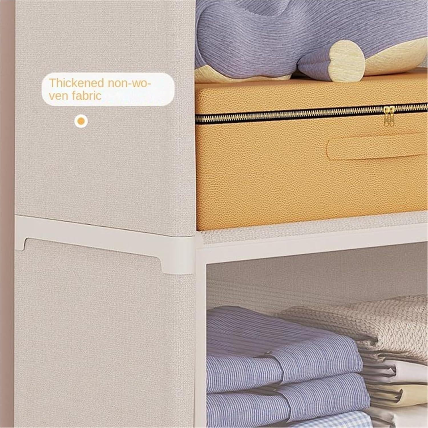 Constructed with a sturdy metal frame complemented by non-woven fabric covers,this wardrobe strikes a balance between durability and lightweight portability. The metal framework offers solid support, ensuring the unit maintains its shape even when fully loaded, while the non-woven fabric provides protective coverage that guards clothing against dust and moisture. We’ve noticed the fabric’s resilience to everyday wear and tear, which helps prolong the lifespan of both the wardrobe and the garments stored inside.