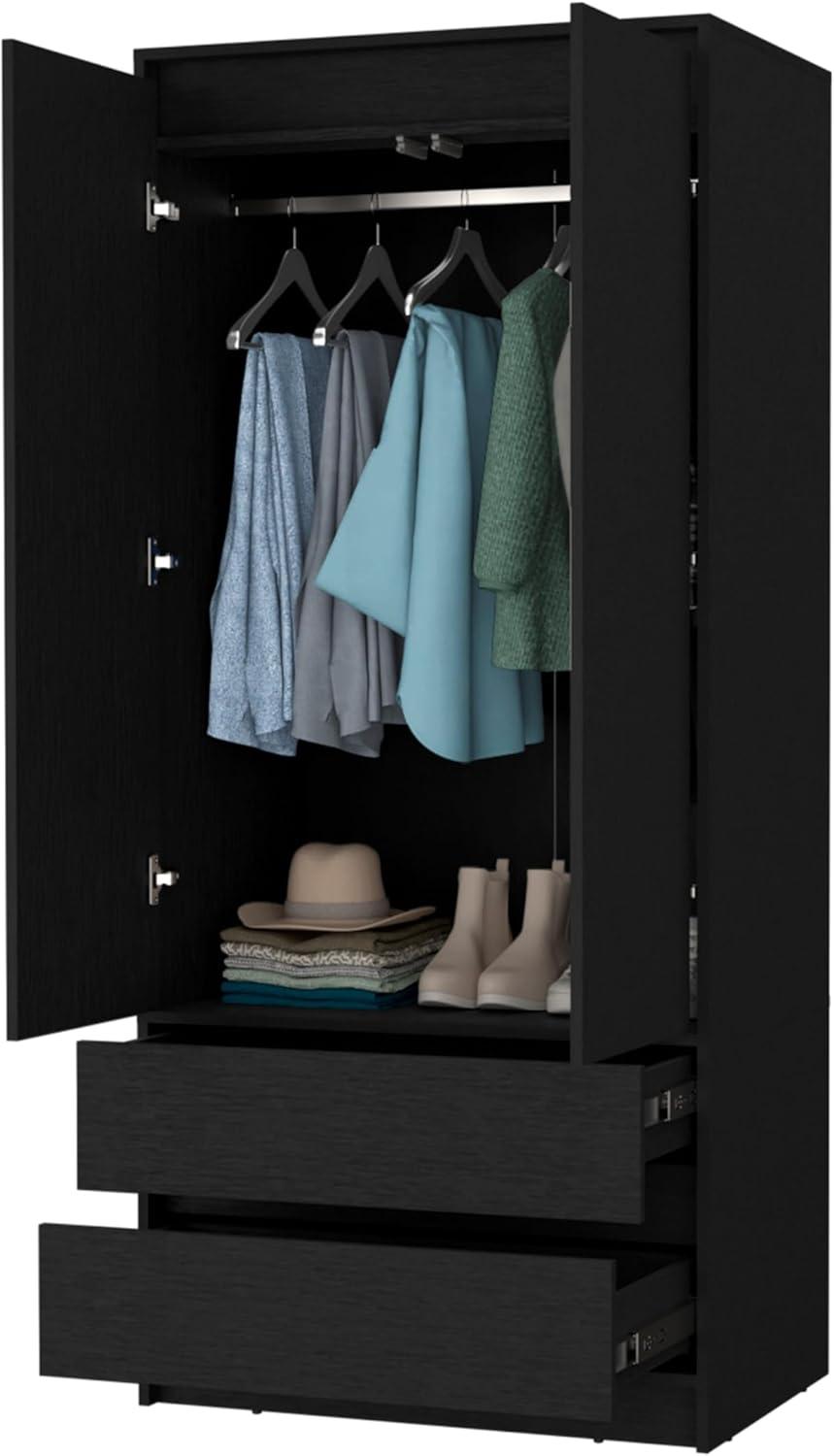 the Black 2-Drawer Armoire strikes a harmonious balance between style and⁢ functionality. Its​ sleek black finish and⁢ sturdy wood construction make it a timeless addition to ⁢any bedroom, while ⁣the ⁢thoughtful design-featuring spacious drawers, double doors, and an integrated hanging rod-ensures ⁣your belongings stay organized and wrinkle-free. Whether ⁣you’re working with‍ limited ⁢space ⁢or simply want ‍to elevate your storage game,⁢ this⁤ armoire ‌offers⁤ a smart,‍ elegant solution that stands tall ⁤in both form and ​function.
