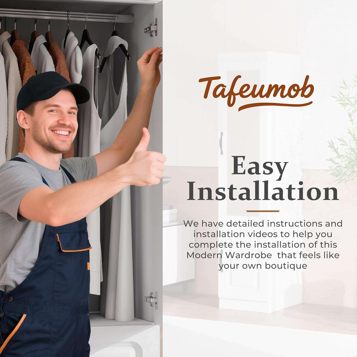 Combining minimalist aesthetics with practical functionality,this wardrobe provides a striking balance between form and utility. Its clean, white finish and refined wooden structure effortlessly complement modern interiors, creating an inviting yet streamlined presence in any bedroom or cloakroom. Crafted from high-quality engineered wood (MDF), the wardrobe offers durability without compromising on style.The smooth surface resists water and scratches, making it both easy to maintain and visually enduring. Whether tucked into a cozy corner or acting as the centerpiece of clothing storage, its contemporary design adds a subtle rustic charm that elevates everyday spaces.