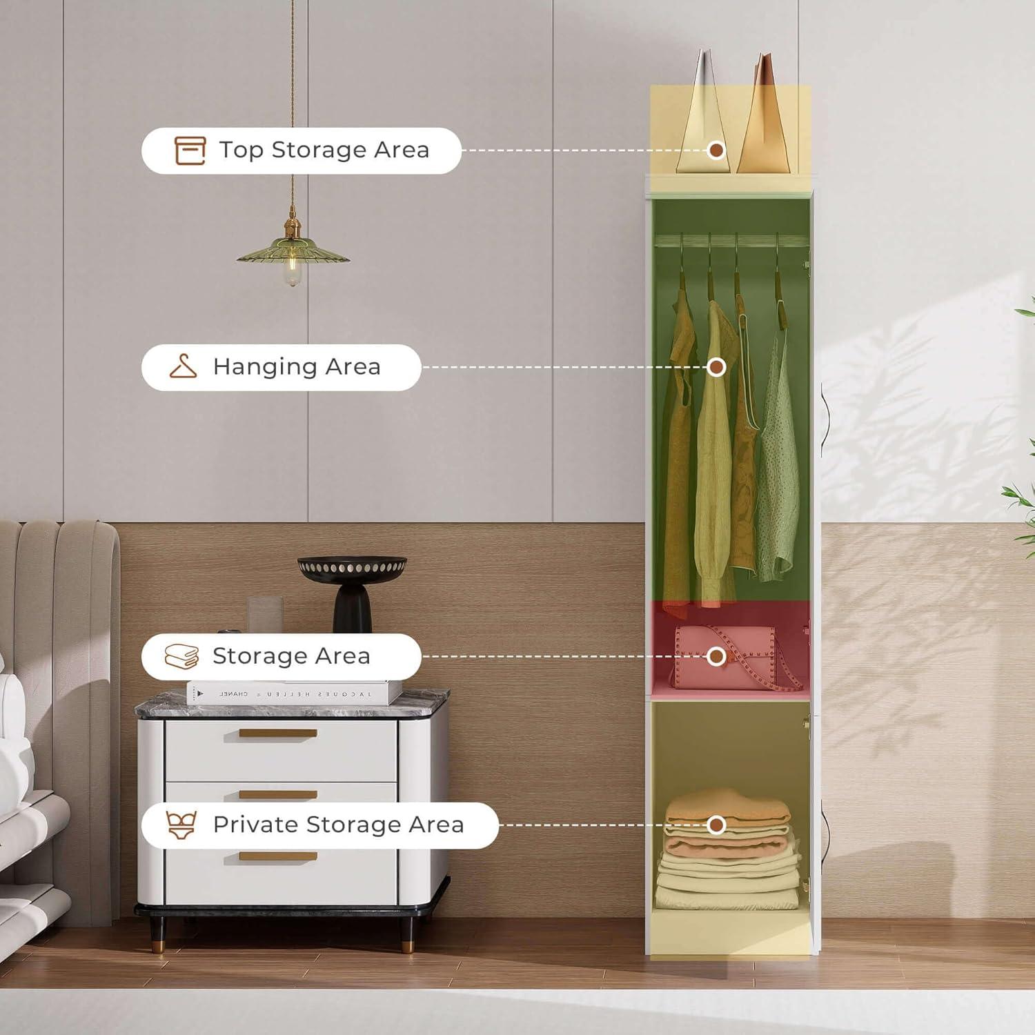 We found the hanging rod to be exceptionally sturdy and well-positioned,making it ideal for keeping our suits,dresses,and shirts wrinkle-free and accessible. The vertical space maximizes the height at 70.87″,allowing longer garments to hang without touching the bottom,which is a huge plus in a small footprint. The rod feels solid enough to handle everyday wear and heavier items like coats without bending or loosening over time.