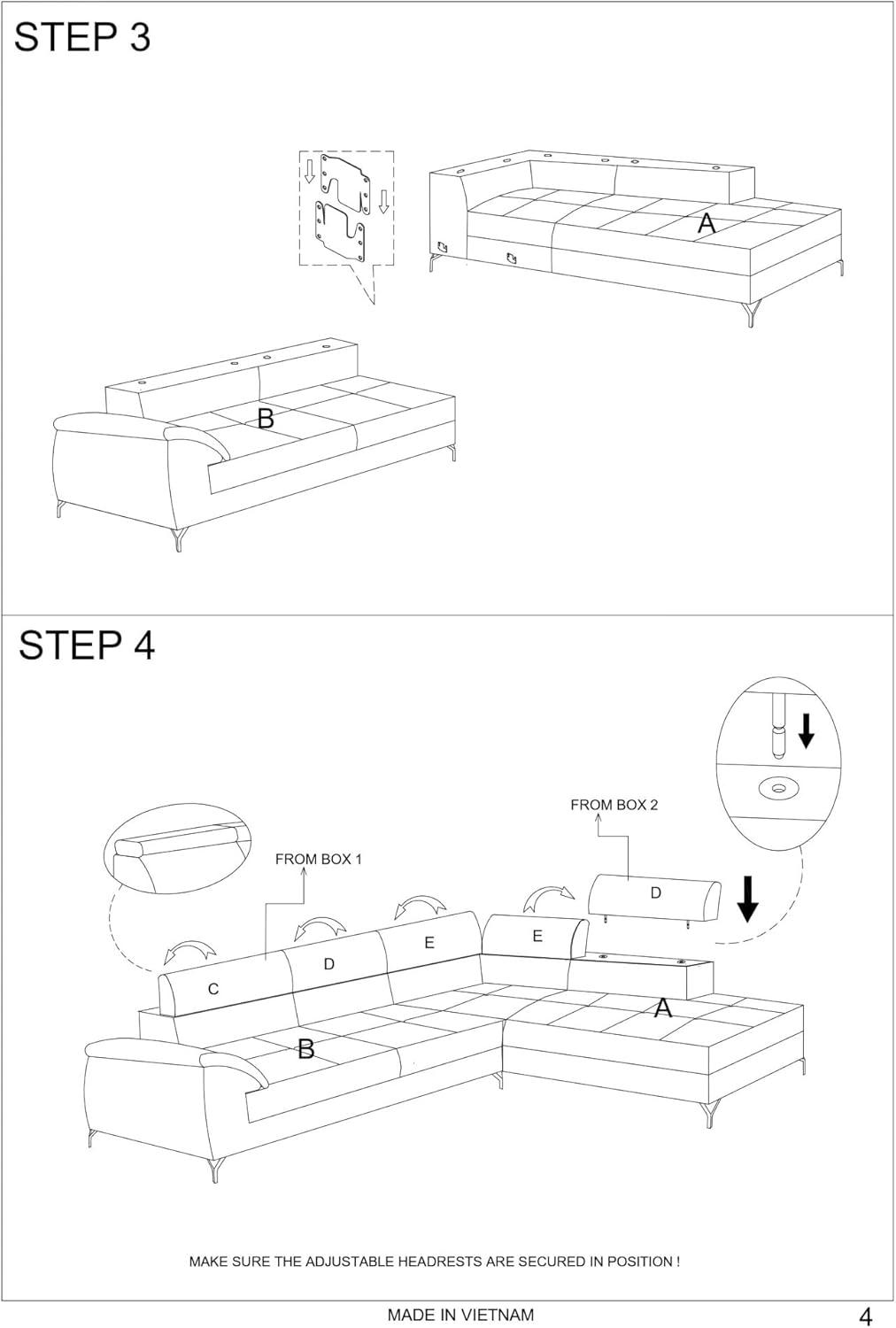 Our experience with this sectional set has been notable for its blend of modern style and comfort. The sleek white faux leather upholstery gives the living area a crisp, contemporary vibe, while the wide seating offers spacious lounging for family and guests alike. The adjustable headrests add a customizable touch, enhancing both the practicality and the aesthetics of the set. structurally, the metal legs provide a solid foundation that feels sturdy without being visually heavy, perfectly complementing its clean lines. Although assembly was required, the process was straightforward and well guided, allowing us to enjoy the setup without hassle.