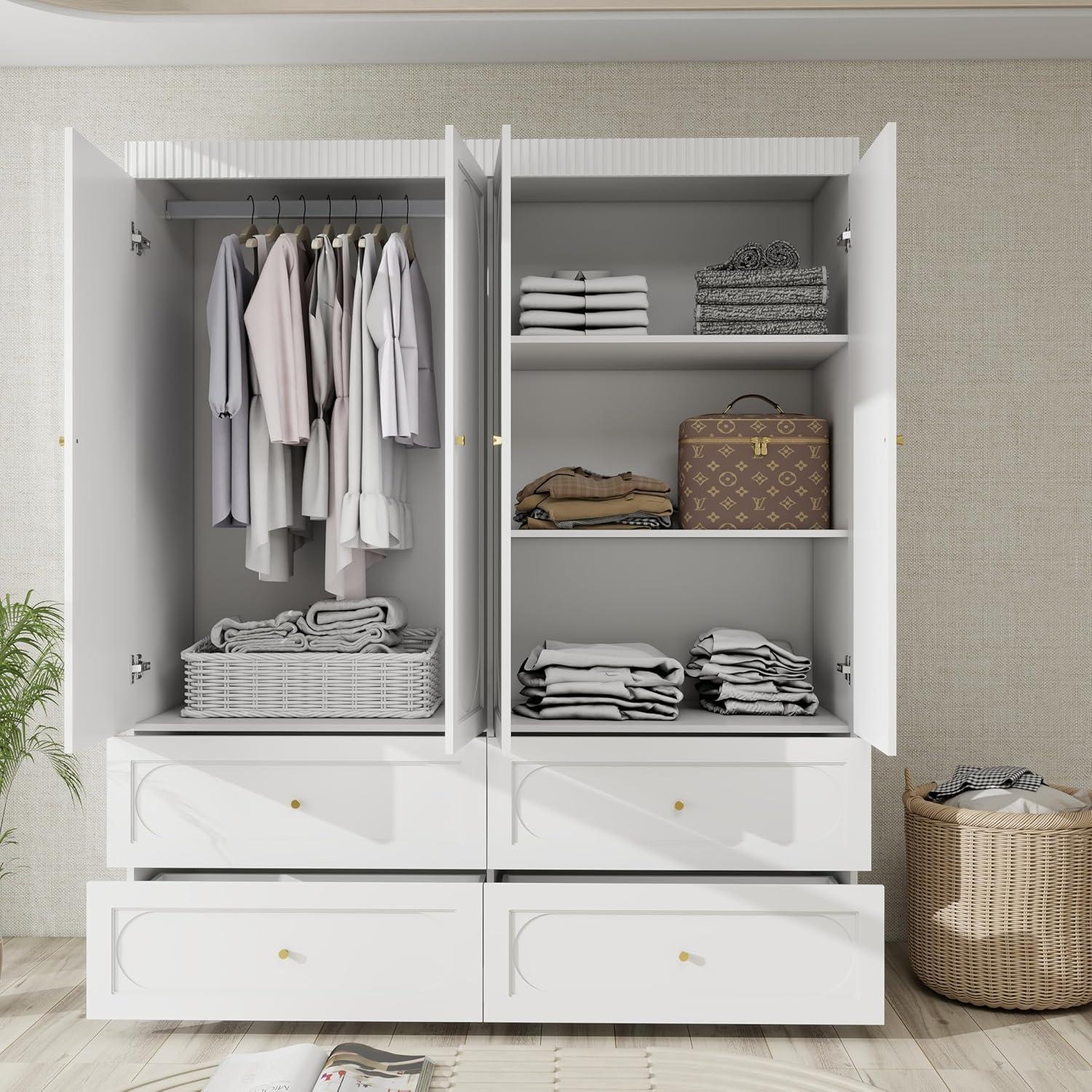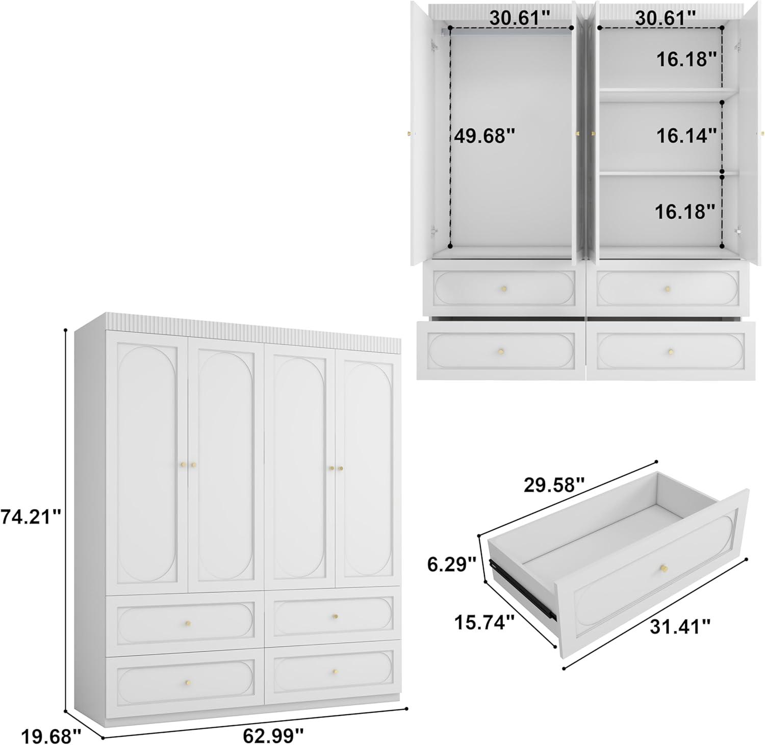 When it comes to maximizing storage without overwhelming the room,this⁢ wardrobe truly ⁢hits the mark. Measuring a balanced 63″ wide by 20.27″ deep and towering at 74″ tall, it offers⁤ a surprisingly generous‍ amount of⁤ space while maintaining a sleek footprint. The interior is cleverly divided into four spacious⁤ drawers paired ‍with four door compartments, each⁤ serving a distinct storage purpose. The drawers prove excellent for organizing smaller⁣ essentials like⁣ socks, underwear, or accessories, keeping them out of sight yet easily accessible.‌ Meanwhile, the ​compartments behind the doors feature ⁤enough hanging space for longer garments such as coats, ‌dresses, and suits,​ allowing us to⁣ keep everything wrinkle-free and neat.