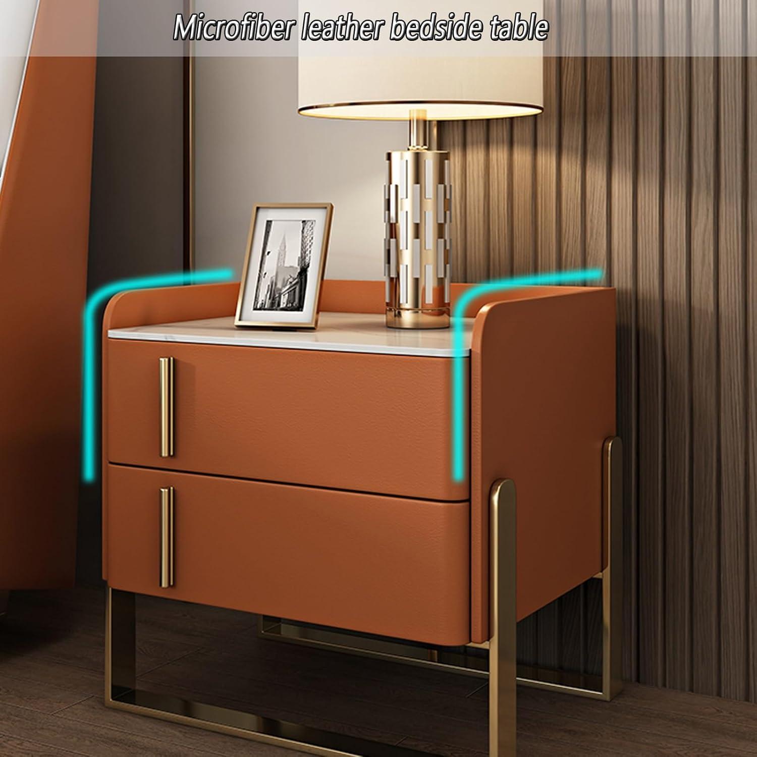 Elegant rock tabletop with microfiber leather finish that is both luxurious and easy to clean | Only one nightstand included in this particular color option, so you need to purchase twice for a set |