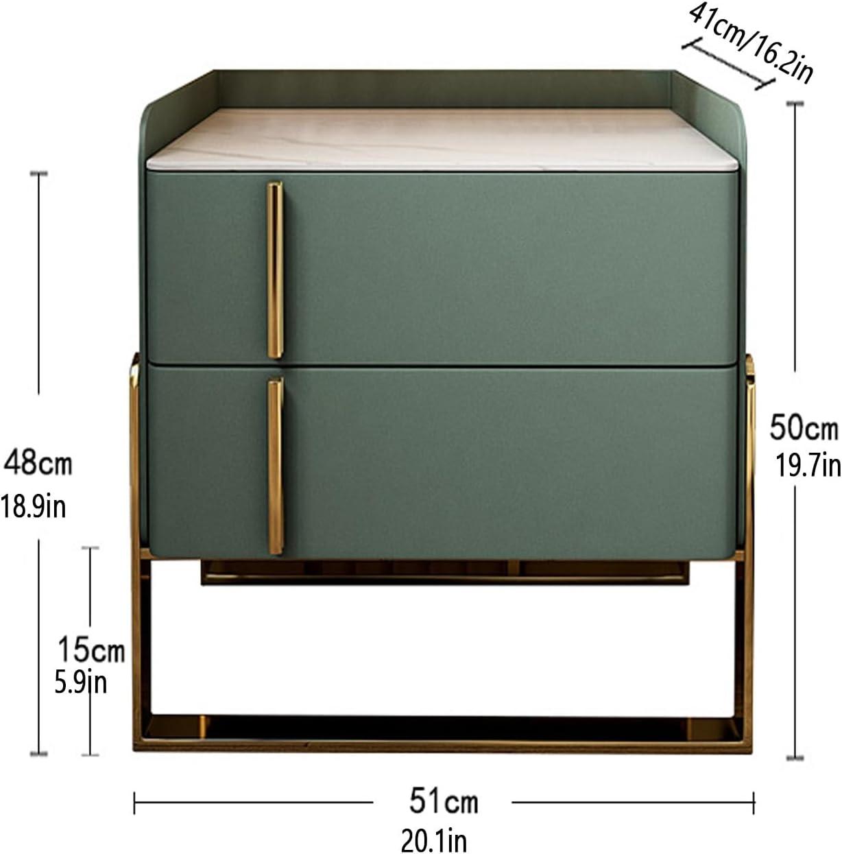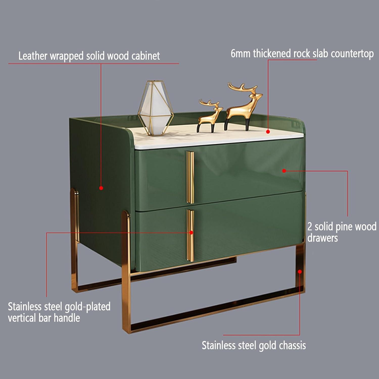 Thanks to its leather-finish rock tabletop and the practical design with two spacious drawers, this nightstand effortlessly elevates room aesthetics while providing smart storage solutions. Its moderate height ensures easy access whether beside a sofa or bed, making it a functional focal point in various settings. The quiet sliding drawer guides and protective baffles add to its family-friendly nature, reinforcing its role in blending style with everyday usability. Together,these features make the green hue not only beautiful but also a significant contributor to an organized,lively home environment.