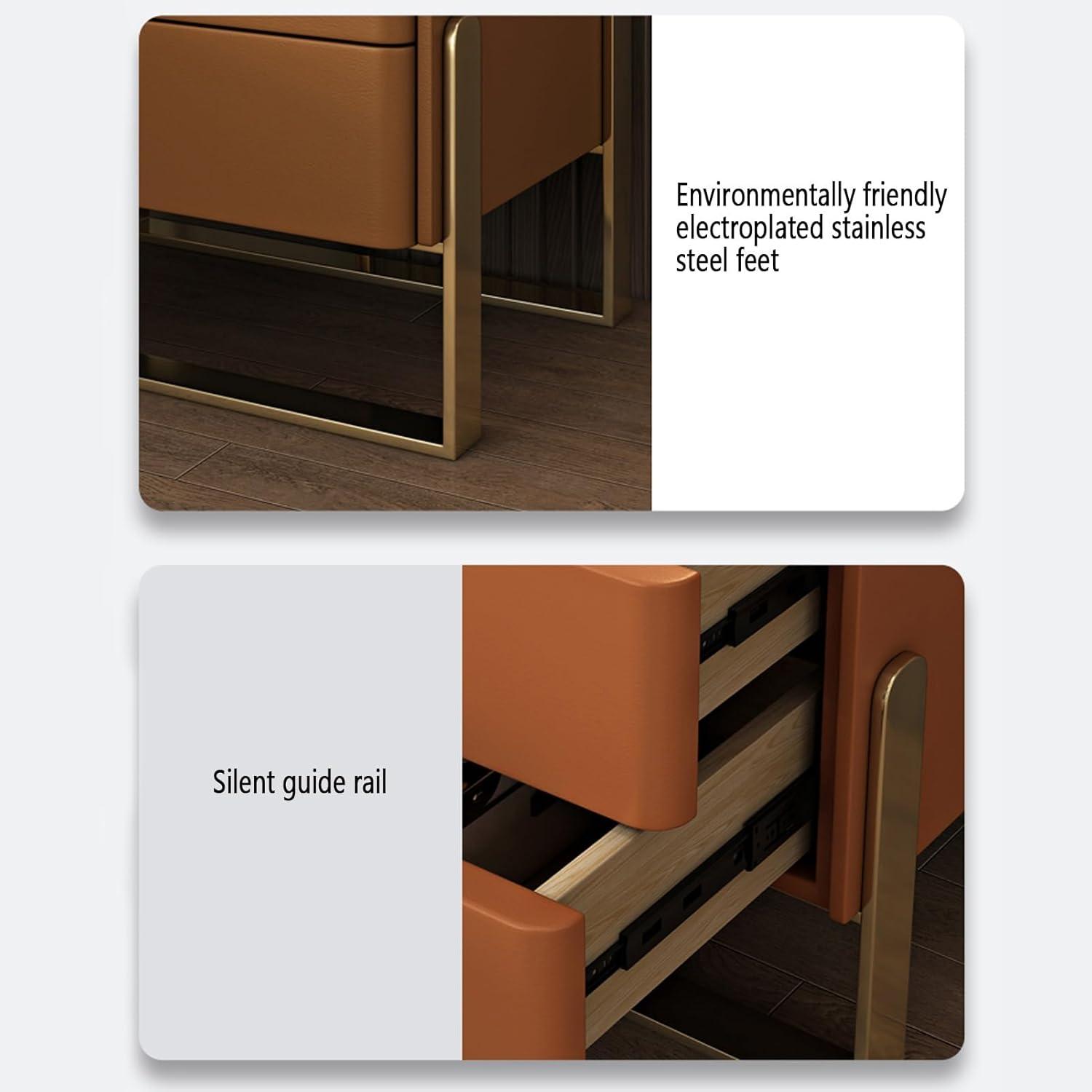 When stacking this set up against other nightstand options, several features immediately catch our attention. Unlike manny basic bedside tables, this one offers a modern leather finish paired with a sturdy metal pedestal frame, which not only elevates its aesthetic appeal but also reinforces durability.The smooth lines with rounded corners make it a safer choice, especially for families with children, while the rock tabletop adds a subtle touch of luxury not often found in similar-priced competitors. Its design versatility allows it to fit seamlessly into various decor styles, making it a flexible pick for bedroom or living room setups.