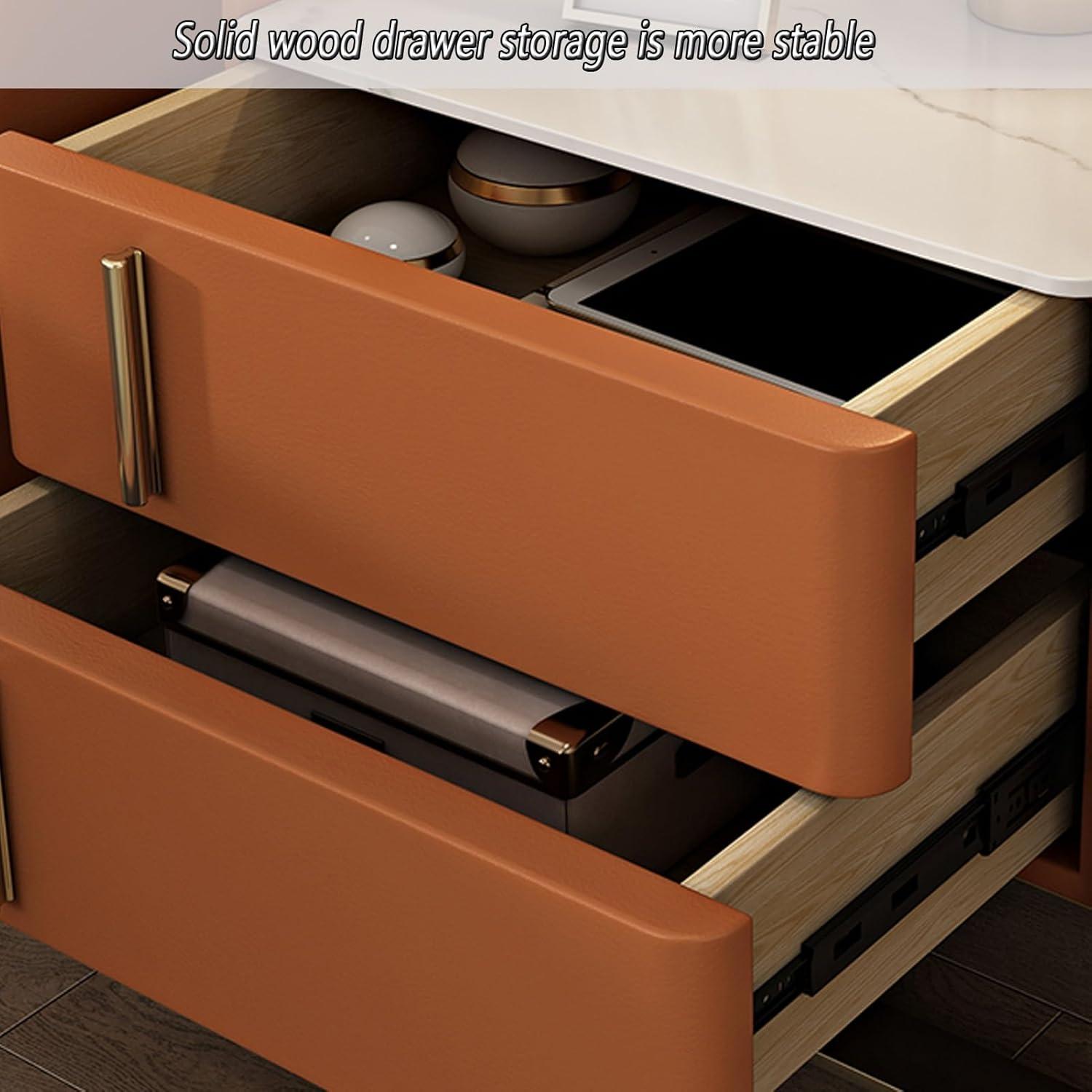The storage capacity exceeded our expectations.With two spacious drawers complemented by an open shelf, organizing became intuitive rather than a chore. We found it perfect for stashing away everything from skincare products to books and small gadgets, keeping our surfaces neat and uncluttered. The microfiber leather finish on the rock tabletop is both durable and easy to clean, adding a subtle luxury touch without demanding high maintenance. Here’s a quick overview of the comfort and convenience features we found most useful: