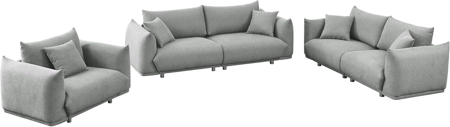 | ✔ Modern & Stylish Design: Clean lines, rolled arms, and sleek metal legs create a sophisticated look that complements many contemporary spaces. | ✘ Weighty Build: Weighing over 300 lbs for the set, moving or rearranging it solo might require some muscle or a helping hand. |