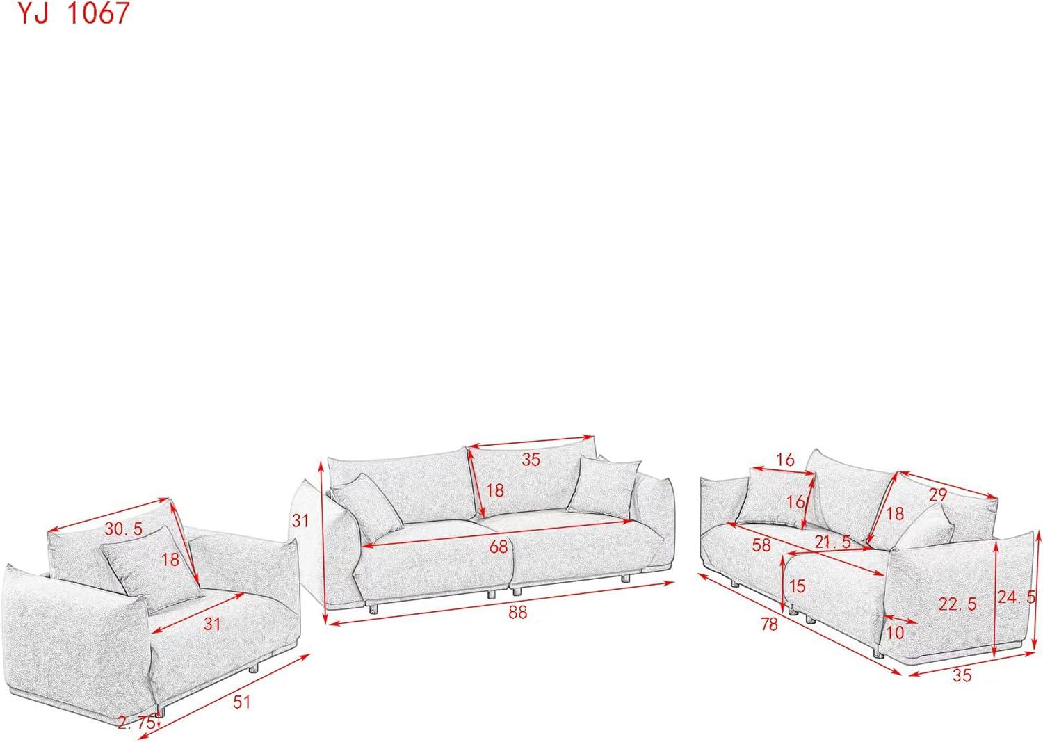 Constructed with a solid frame supported by sturdy metal legs, this set promises durability and stability. Each seat comfortably supports up to 250 lbs, while the floor-protecting caps on the legs show attention to detail that homeowners will value. Assembly was surprisingly straightforward, coming with clear instructions and necessary hardware. The entire set weighs just over 300 pounds, highlighting substantial build quality without being unwieldy. the combination of comfort, durability, and sleek aesthetics makes this sofa set a compelling choice for anyone seeking to refresh their living space with a cozy yet stylish seating solution.