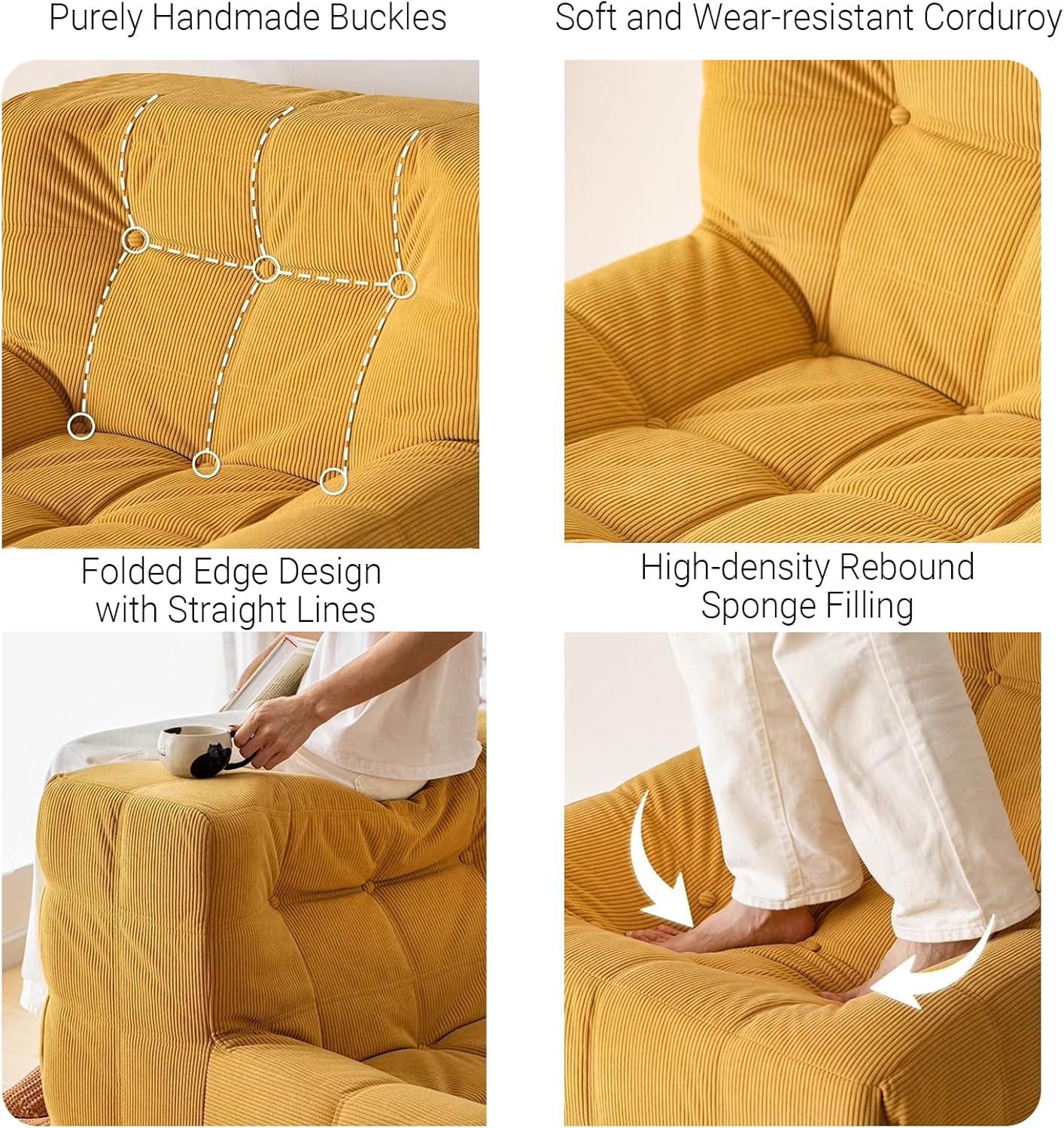 Compact & Modular: Ideal for small spaces, this sectional can adapt to living rooms, studies, or bedrooms without crowding the room. | Limited Color Options: The retro yellow corduroy theme is unique but may not suit everyone’s palette or match all décor styles. |
