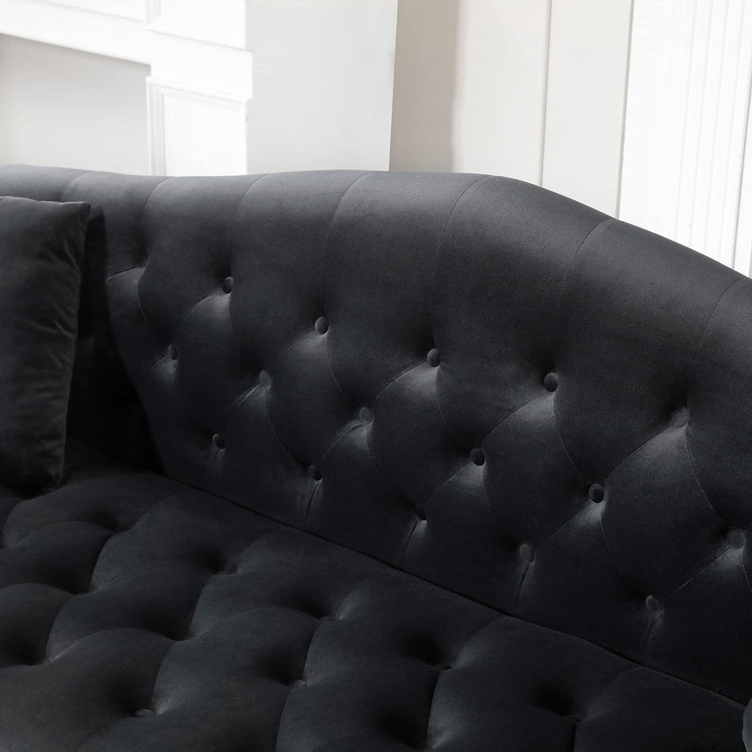 the ⁢upholstery⁣ of this sofa truly stands out thanks to its sumptuous⁤ velvet ‍fabric, which offers a soft‍ yet durable ⁣surface ‍that ⁣holds up well under regular use. The velvet’s rich​ black hue remains vibrant, ⁣resisting visible wear and fading over time. Button tufting and individually⁢ applied​ nailhead trimming enhance ‍the⁣ texture and visual ⁤appeal, while adding a handcrafted sophistication ⁤that⁤ elevates the overall aesthetic. The rolled arms ‍and⁤ elegantly curved backrest, ‍clad ⁢in this plush‍ fabric, contribute both style and comfort, creating a cozy spot⁢ to unwind or entertain.