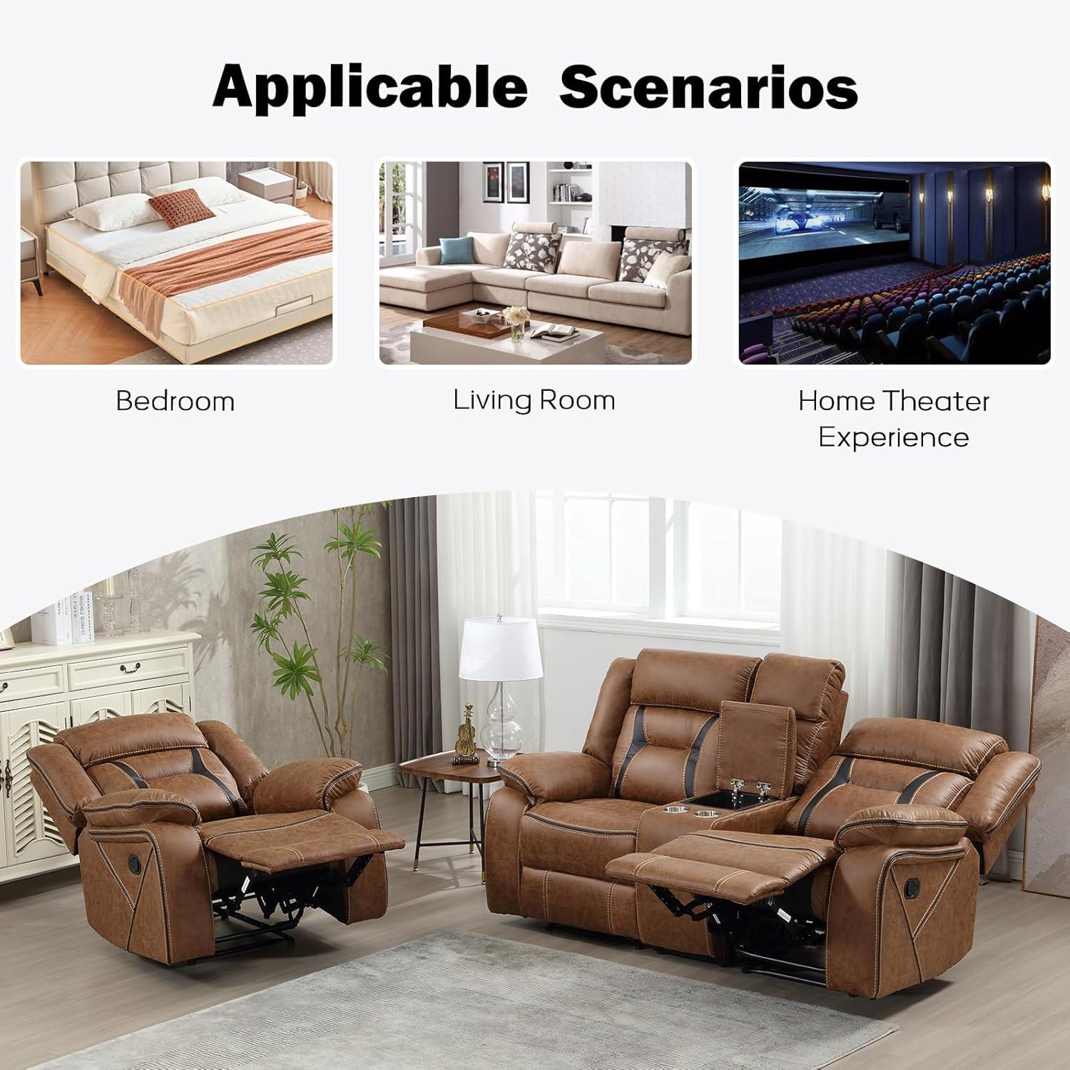 Considering the combination of materials, functionality, and design, this set truly delivers solid value for the price point. The premium faux leather upholstery offers a handsome, high-end look without the hefty cost of genuine leather, while also being incredibly easy to clean-an important factor for everyday use. The manual reclining mechanism on both the single chair and loveseat operates smoothly, allowing us to find just the right angle to relax without feeling cumbersome or overly mechanical. In addition, the center console with hidden storage and cup holders elevates the practical appeal, making it more than just a place to sit but a convenient gathering spot that keeps essentials within easy reach.