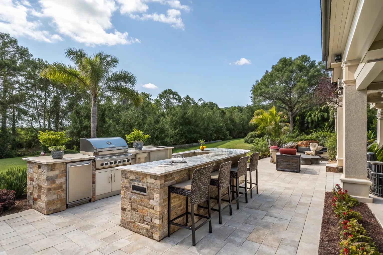 Construct your outdoor kitchen using weatherproof materials specifically designed for the humid and sometimes stormy Florida environment. This strategy safeguards furniture and fixtures against fading, rust, and deterioration.