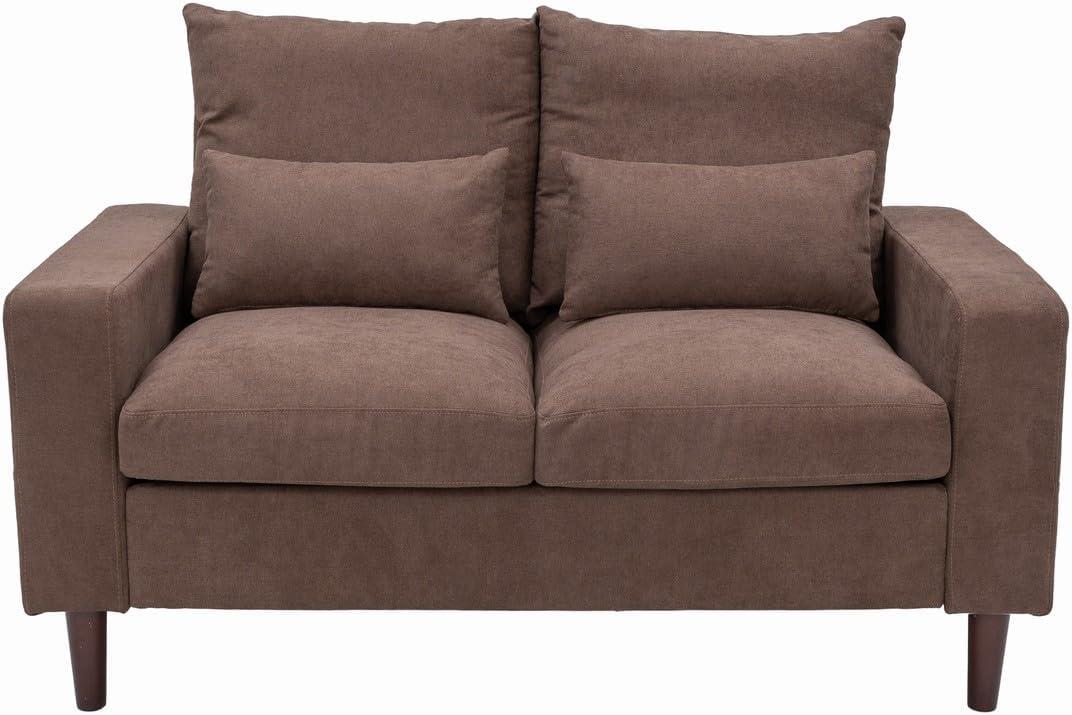 When it comes to furnishing small apartments, finding a piece that balances style and practicality can be a challenge. This compact two-seater sofa impresses with its sleek, modern design that fits effortlessly into cozy living areas without overwhelming the space.The rich brown fabric adds a warm, inviting touch, while the paneled back and armrests create a elegant silhouette that enhances any décor style, from minimalist to eclectic. Its clean lines and understated elegance ensure it becomes a tasteful focal point without cluttering your room.
