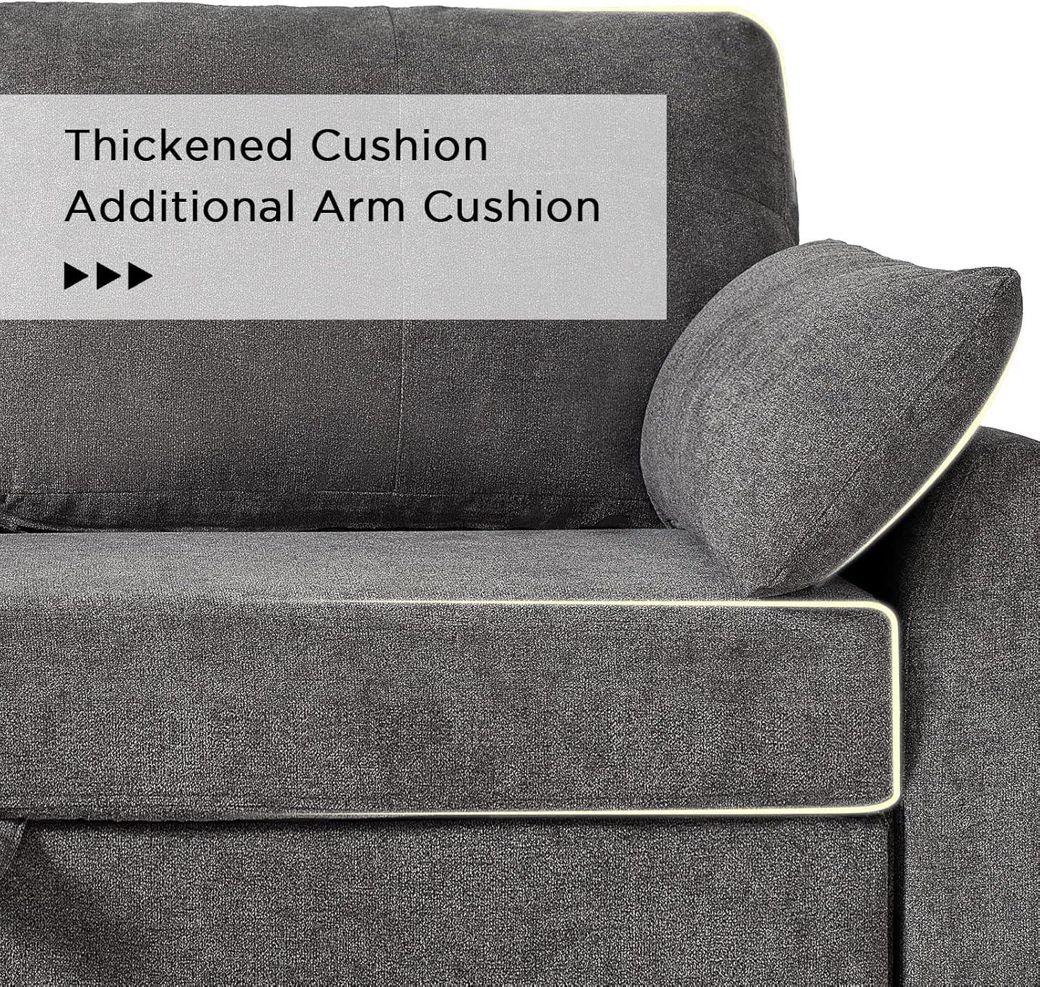 Over time the PaPaJet Sofa Bed, Sofa Sleeper with Storage Chaise, L Shape Pull Out Couch Bed, Oversized Sofas for Living Room-Grey Linen reads less like furniture and more like a habitual corner of the day; you notice where feet settle, where books collect, and how the chaise becomes a magnet for quick naps in daily routines.In regular household rhythms you see cushions relax, faint lines form on the linen, and the pull-out tucks into evening flow as the room is used.You feel its everyday presence more than you measure it — a familiar surface for small rituals that quietly shapes how the space is lived in.