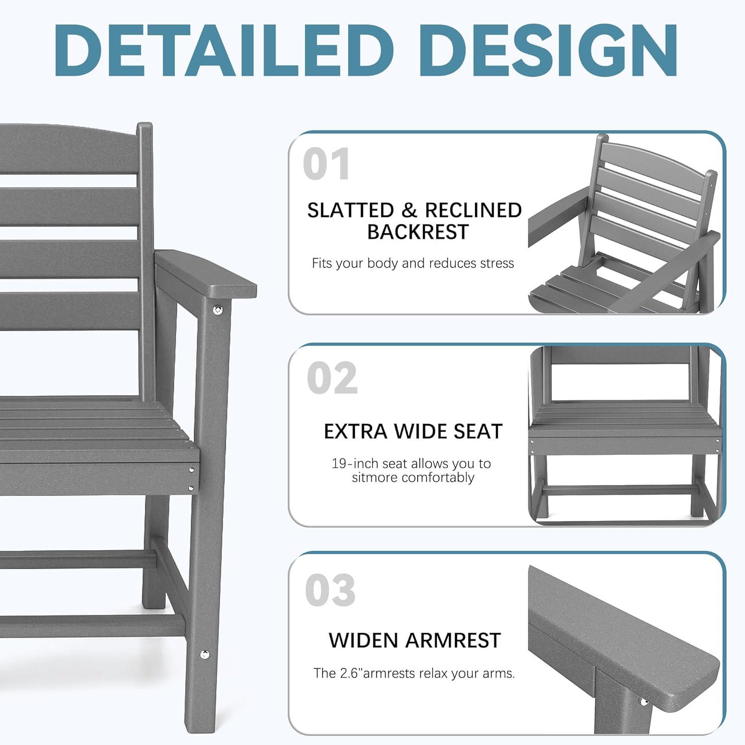 When the boxes first arrive and you peel back the protective wrap,the pieces don’t look like abstract specs on a page — they read as objects you can touch. The grey finish catches light in a way that makes the surface look slightly different as you move: a soft matte from some angles, a faint sheen from others.You run a hand along the tabletop and feel the shallow grain and the cool, slightly resilient give of the material; the edges are generally smooth, tho a few corners feel crisper than the rest. There’s a muted, neutral tone to the color that tends to sit quietly against grass or decking rather than shout.